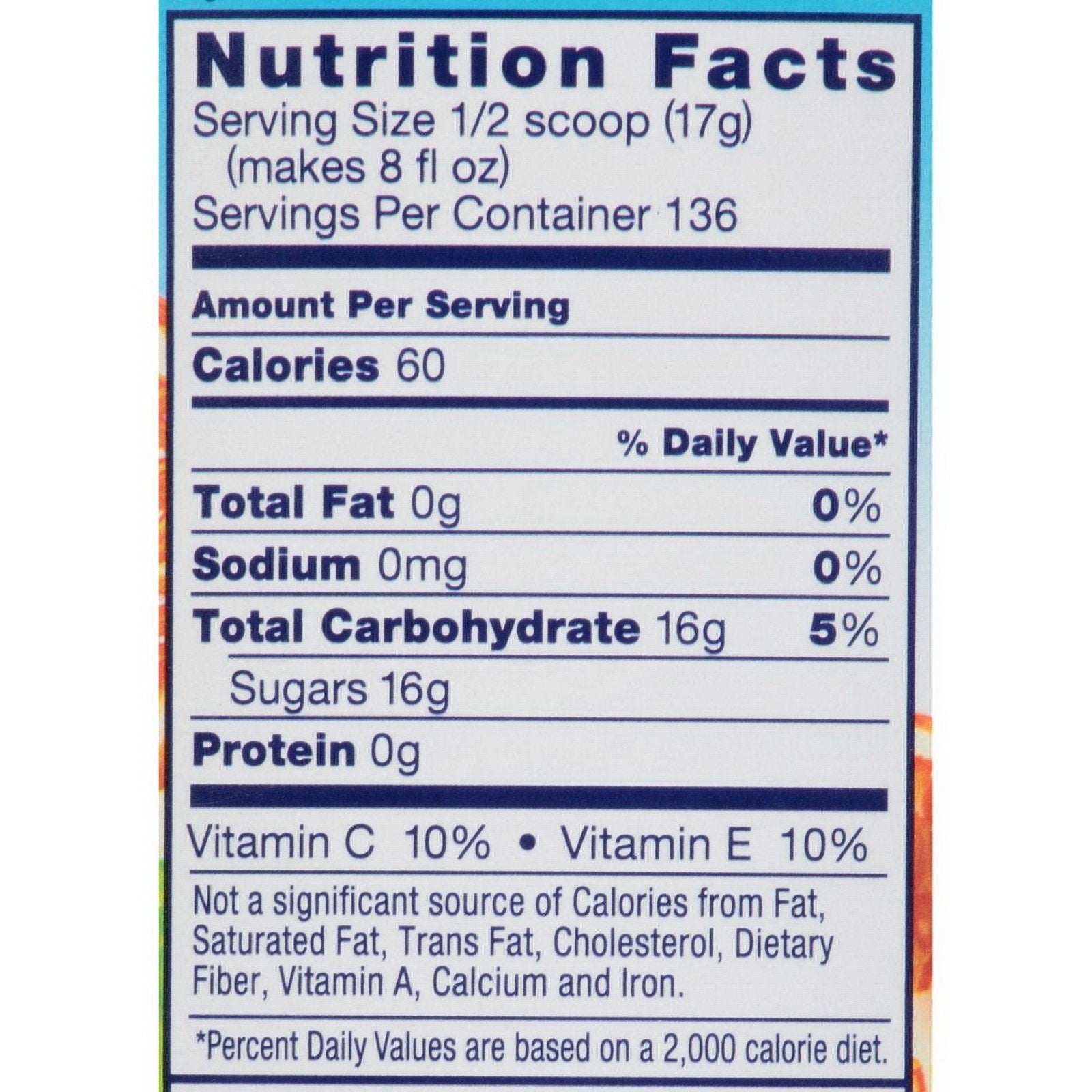 Healthier Choice - With 35% less sugar than leading regular sodas and no caffeine, Kool-Aid Artificially Flavored Tropical Punch Drink Mix is a healthier choice for the whole family. This product contains 25 grams of sugar, whereas leading regular sodas contain 40 grams sugar per 12-fluid ounce serving. It's also a good source of vitamin C, making it a nutritious drink option.