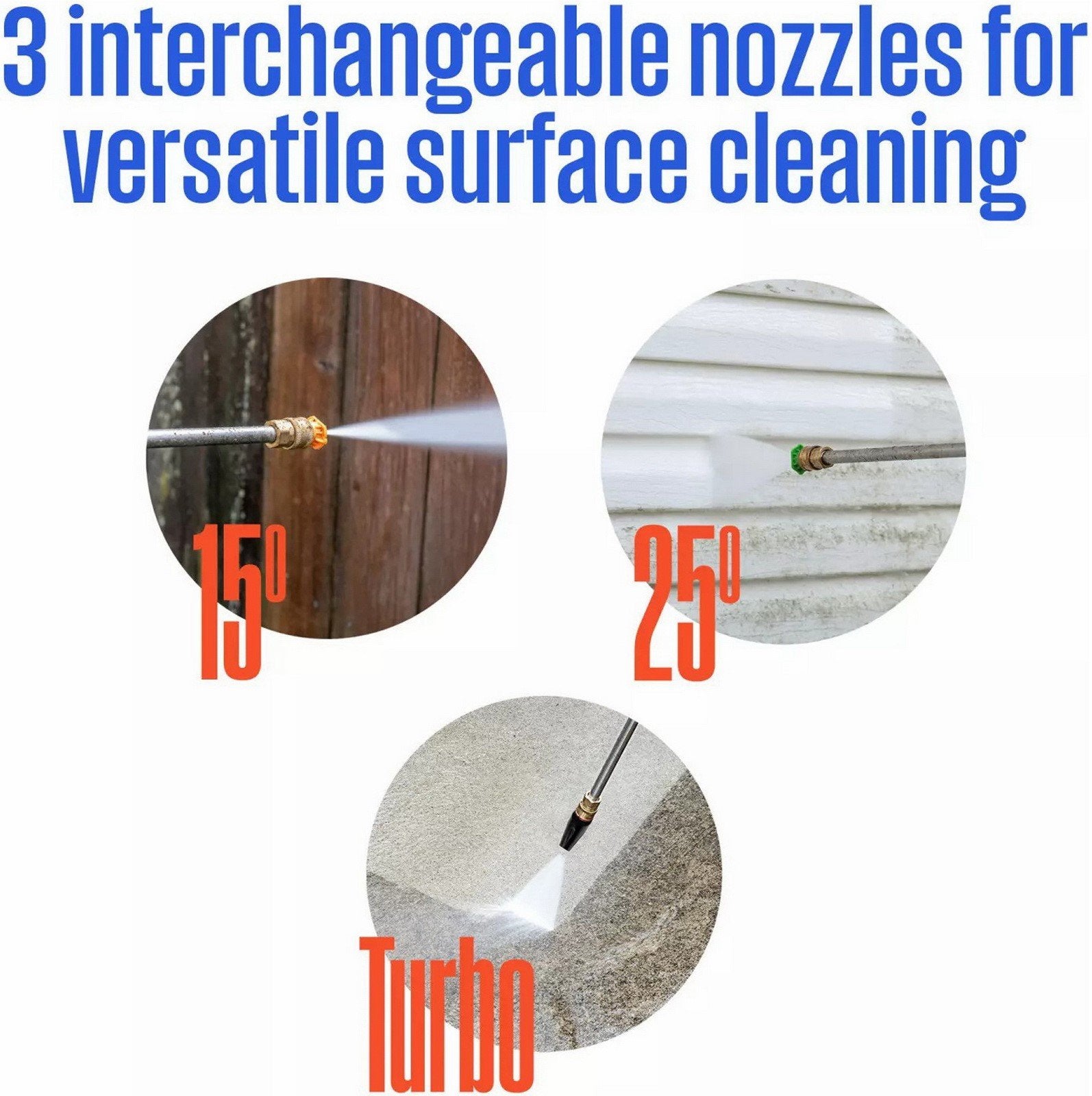 - Three Quick Connect nozzle tips (15°, 25°, and turbo)