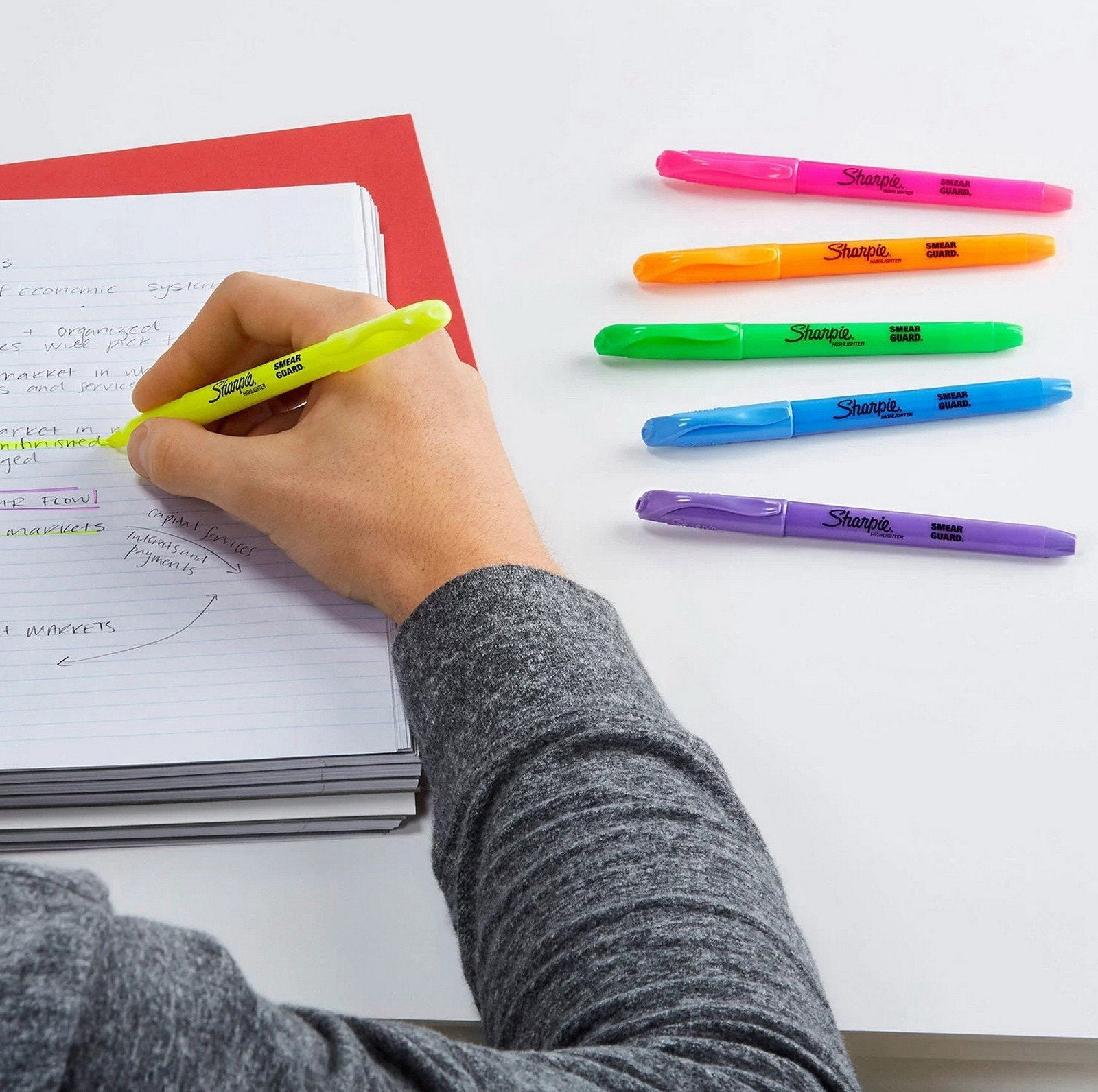 Pick up a Sharpie Accent Highlighters, Assorted Colors, 24 Pack today and have the tools you need to get informed, stay organized and take notes. Stay on the ball with Sharpie Highlighters and keep your hands and your documents clean with Sharpie's patented Smear Guard fast drying ink that stays where you put it. This highlight kit includes six bright highlight colors and plenty of them to insure you have good highlighters on hand for any occasion.