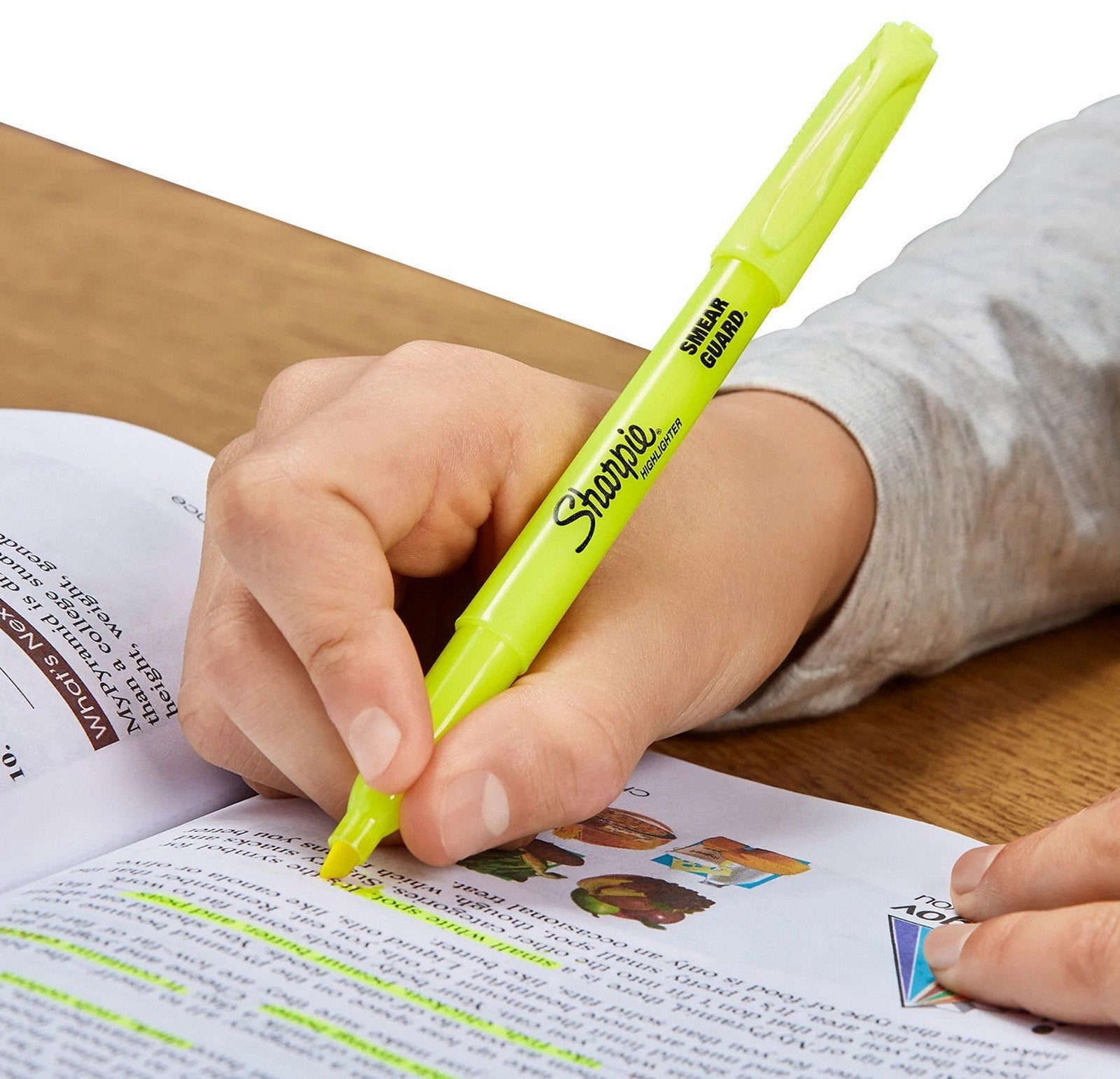 Sharpie Highlighters with Smear Guard Ink are especially perfect for all those left-handed highlight users out there! Sharpie Highlighters contain Sharpie's patented Smear Guard ink technology that dries quickly and resists smudging; so, you can say goodbye to splotched, messy hands and hello to clean, vibrant work. Sharpie Accent Highlighters will work with most laser and ink-jet printers. For best results when highlighting, allow all ink to dry before using a highlighter over the surface.
