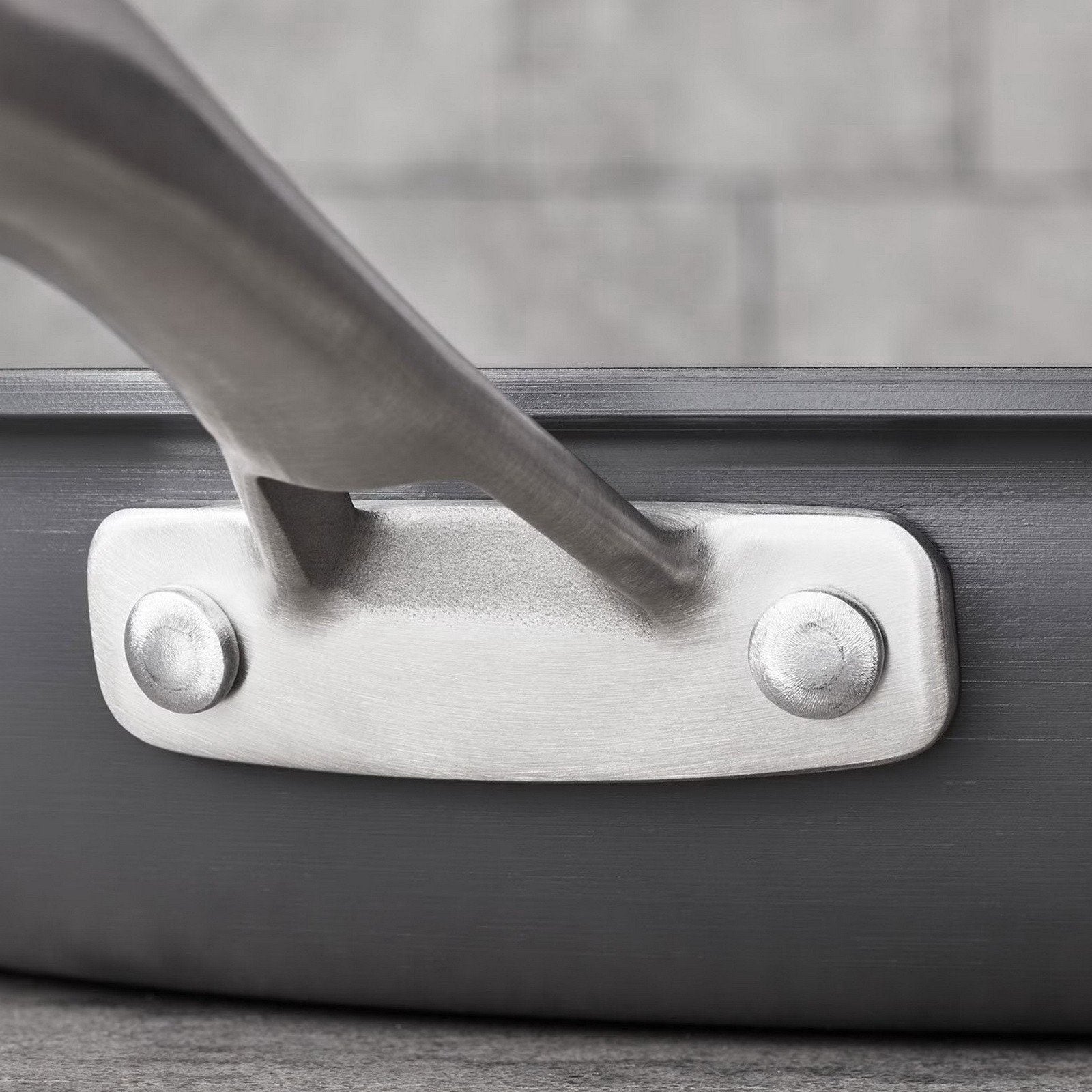- Nonstick interior, hard-anodized aluminum exterior, stainless-steel handles