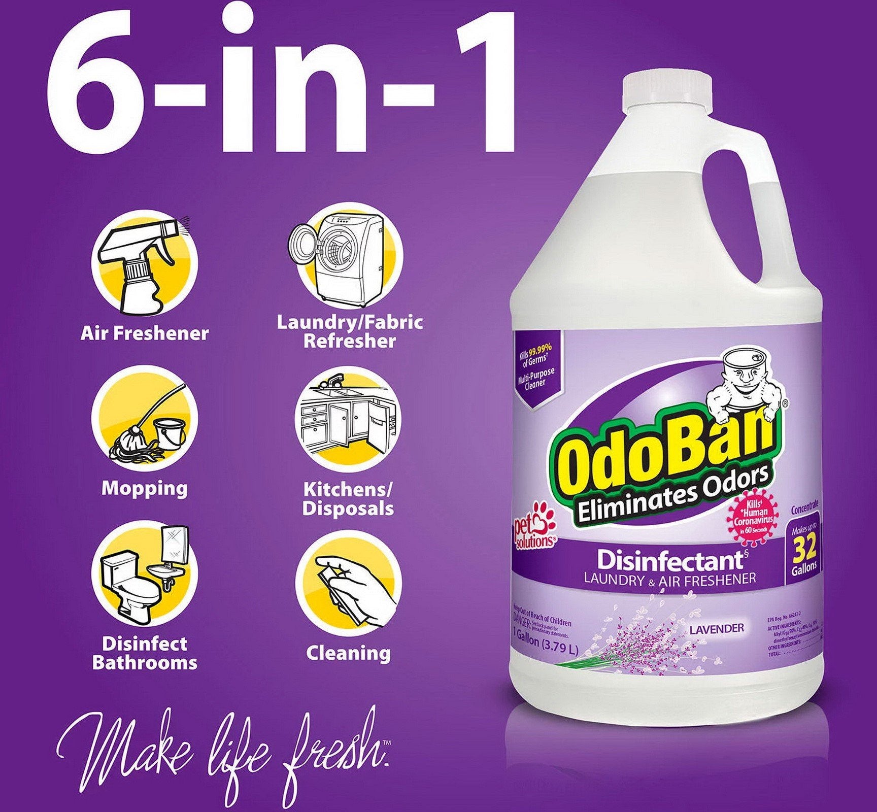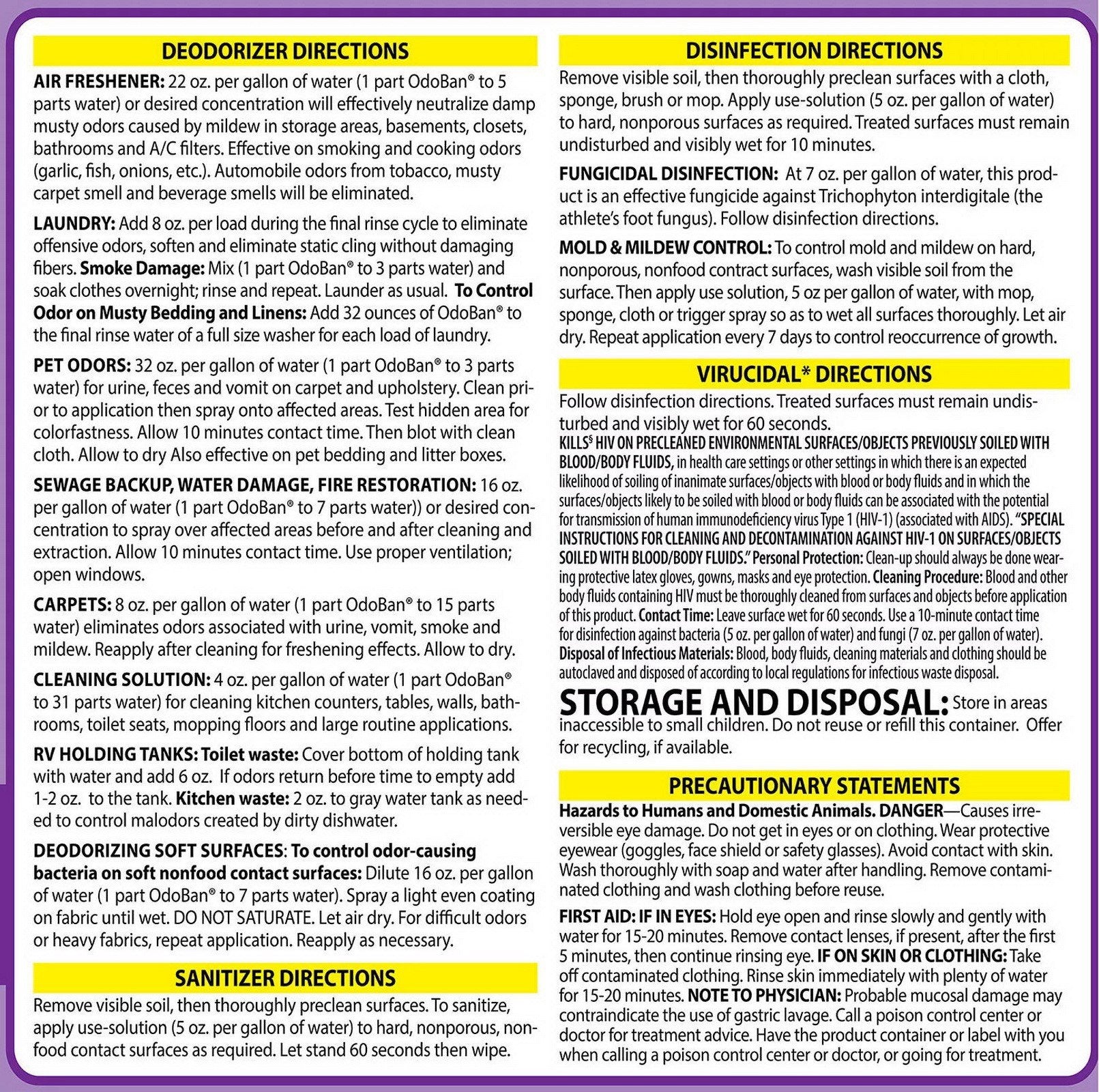 OdoBan is a multipurpose concentrate that makes up to 32 gallons. This industrial liquid odor eliminator leaves no residue and has a variety of uses. OdoBan eliminates foul odors caused by pets, mildew, smoke, vomit, sewage and urine. It's an excellent product for fire and flood restoration, too.