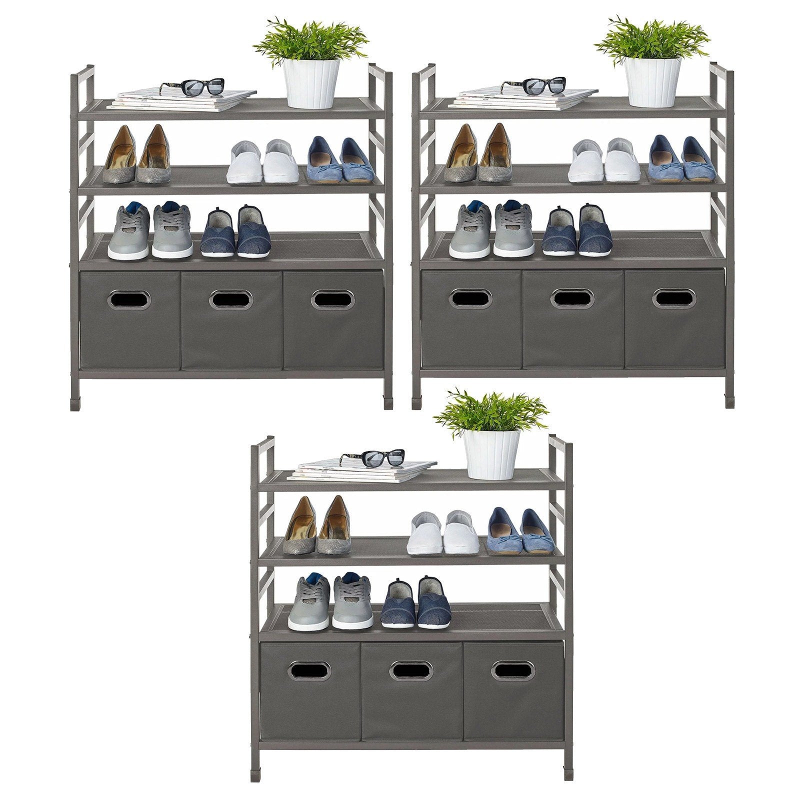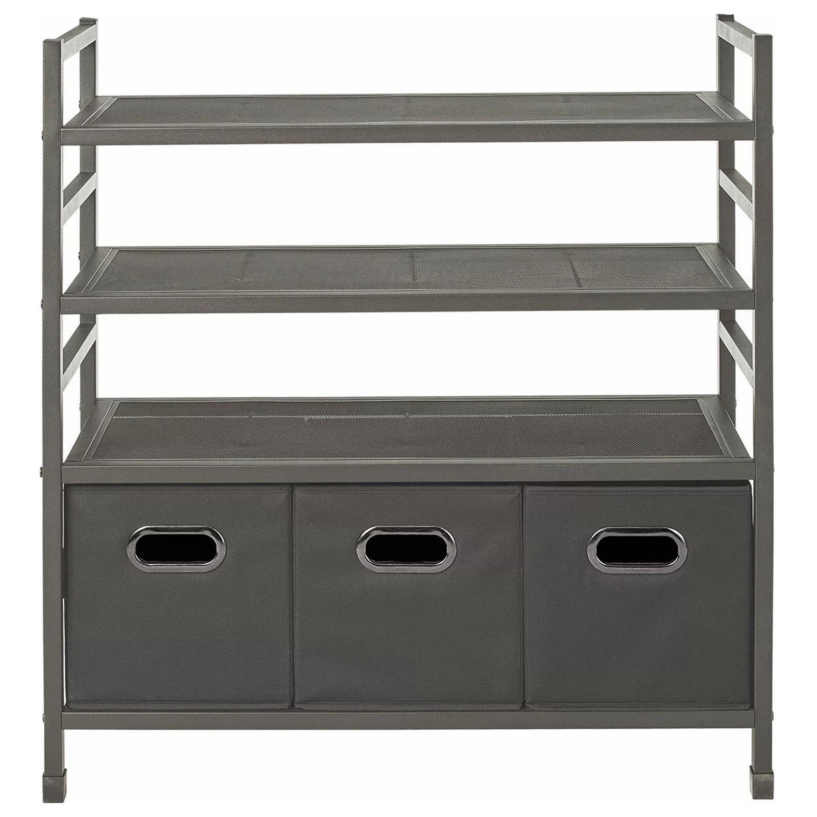4 Mesh Shelf Stackable Metal Storage Rack with 3 Fabric Bins Shelving Unit