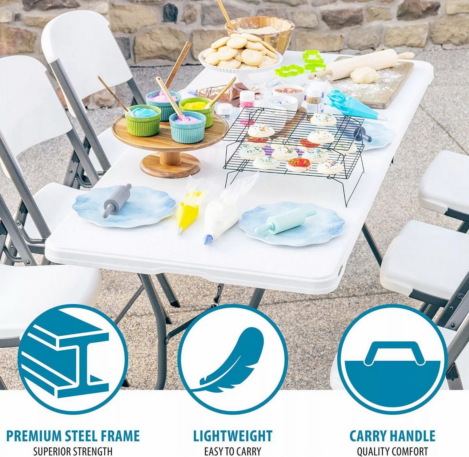 6' Long Folding Table Fold In Half HDPE Top Steel Frame 72" x 30"