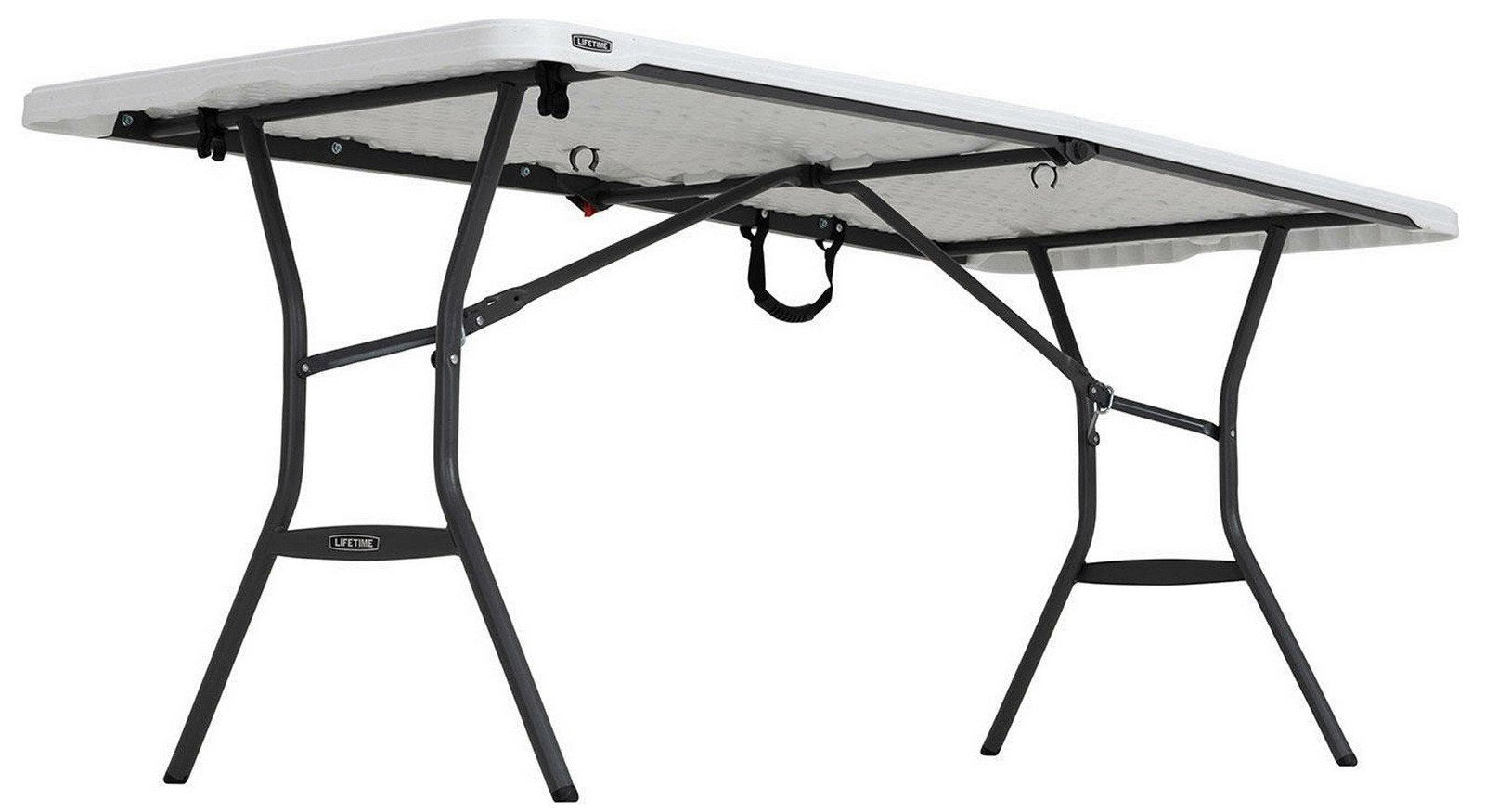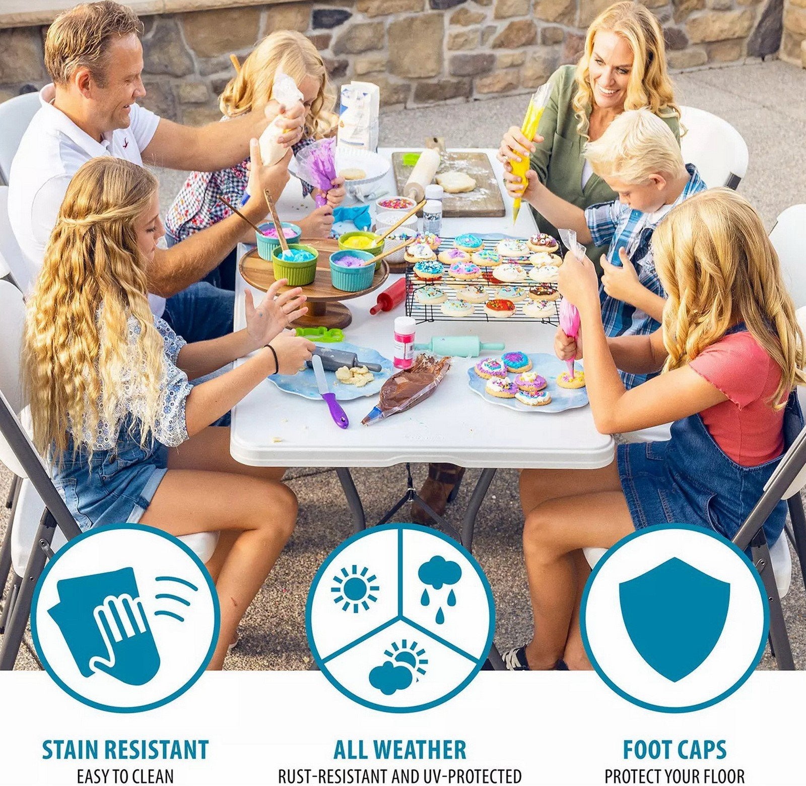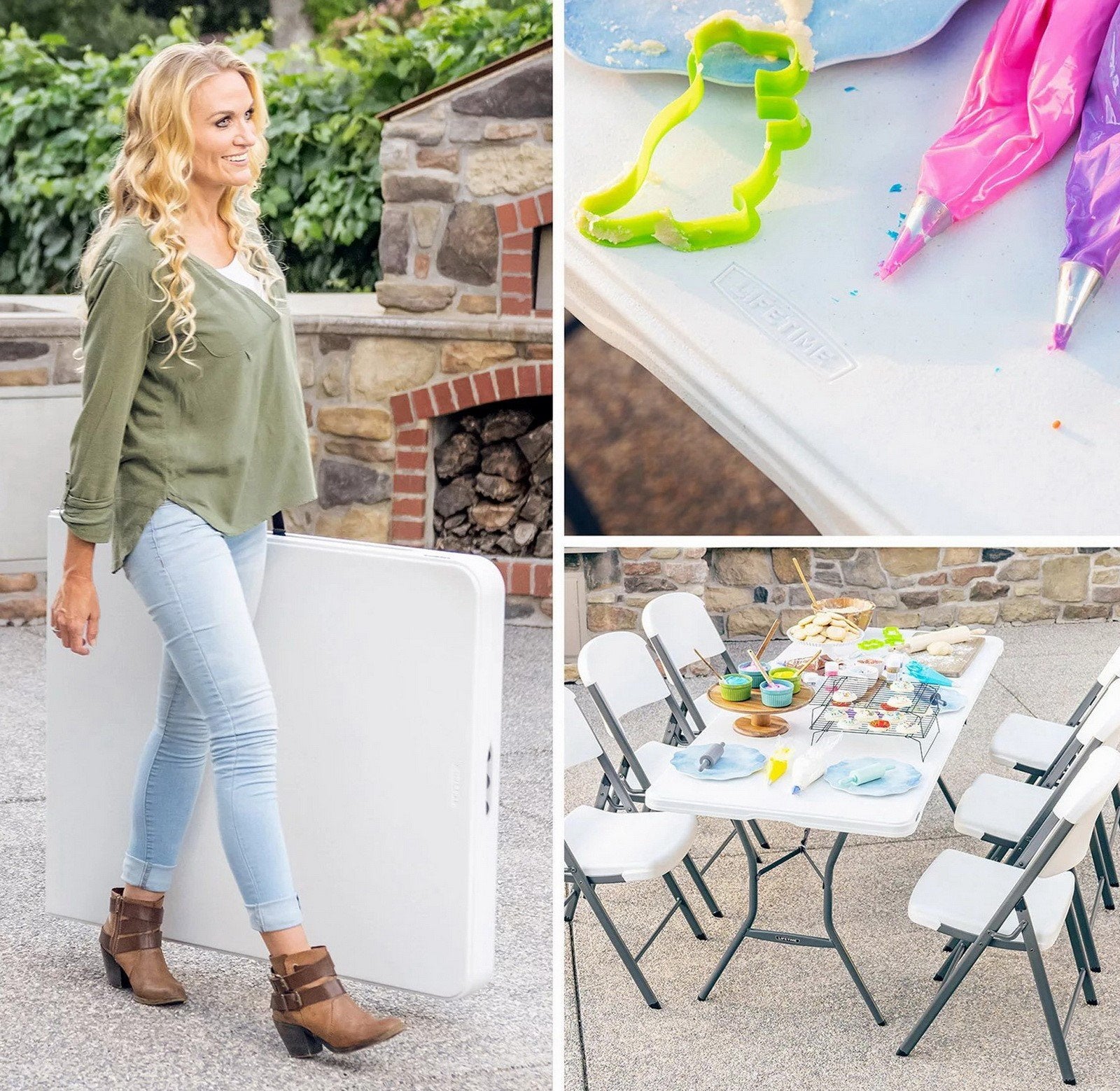 The table is incredibly durable with dent-resistant corners and edges and a weather-resistant build made to withstand extreme conditions. The stain-resistant tabletop makes this table easy to clean after any event and keeps your table looking great for years. The quality steel construction will help this stand the test of time and ensure you can continue using your product for years to come. The steel frame is bonded with enhanced polymer resin that creates a high-quality, durable finish. This powder-coating allows for maximized protection from rust, wear, damage, and the elements. The Lifetime Fold-In-Half Table is a great option for any home and ideal for a family game night, birthday parties, and many other events.
