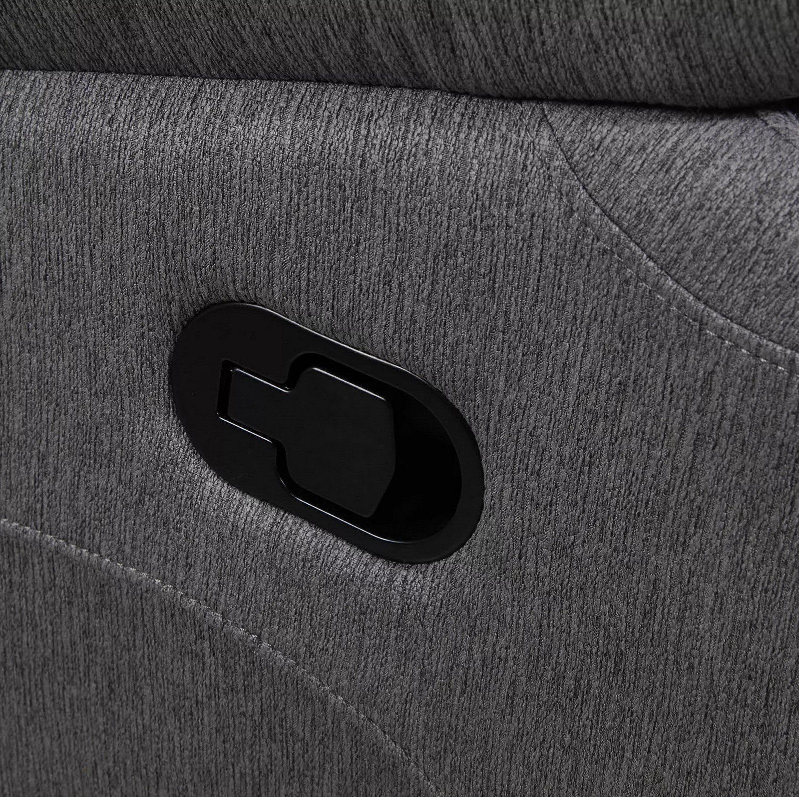 - Motion is facilitated by a steel reclining mechanism activated by a manual lever located on the outside of the piece.