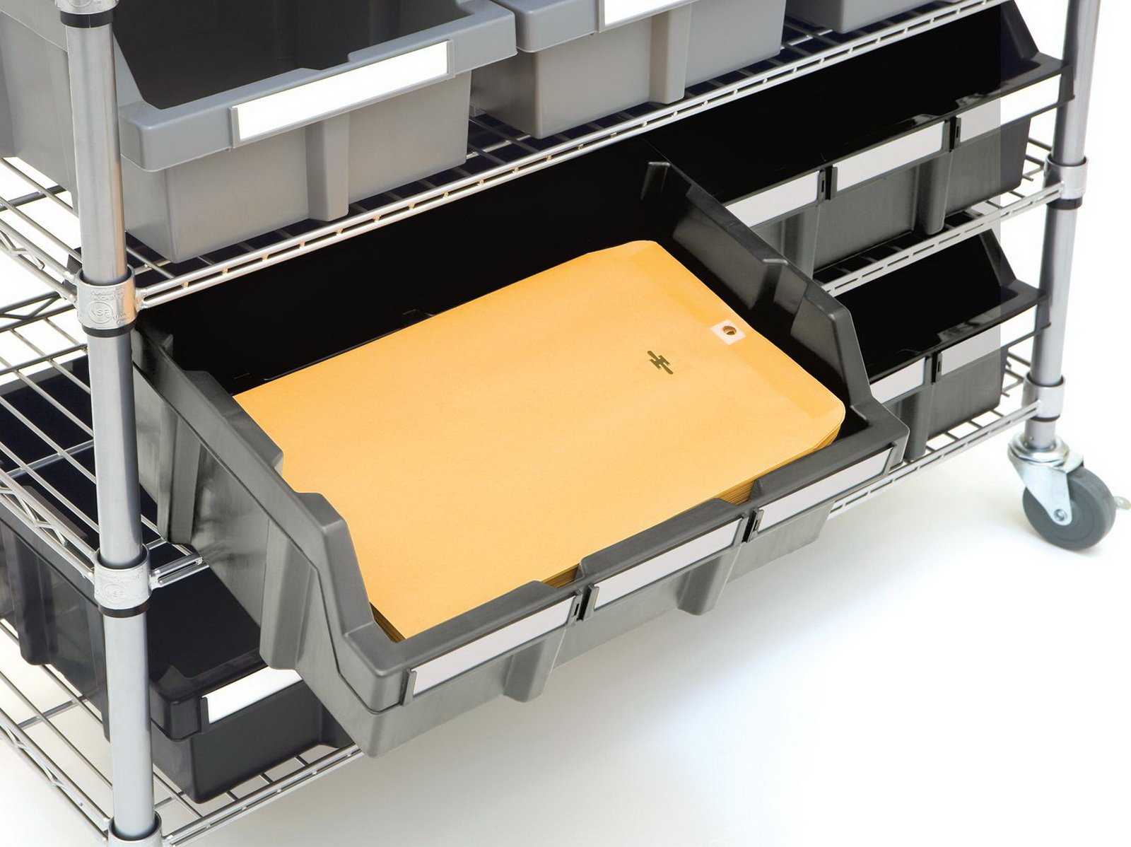 Get organized with this Multi-purpose, 22-bin rack with wheels - the best commercial bin rack system. The polypropylene bins slide out easily and lock into place for quick and efficient storing. This storage solution helps organize all your small things and keep them out of the junk drawer. It's ideal for retail, garages, restaurants, schools and offices.