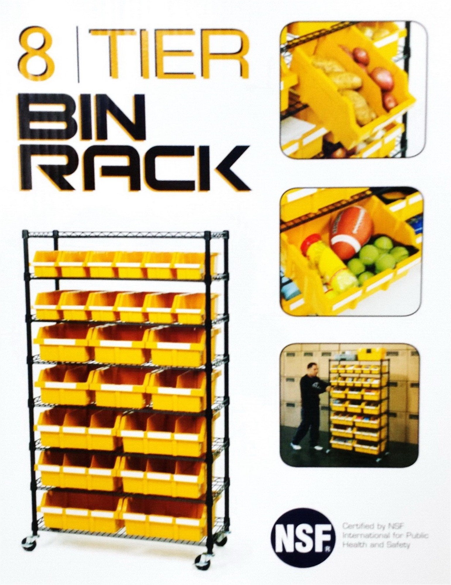 8 Tier Steel Bin Rack Shelving with Wheels