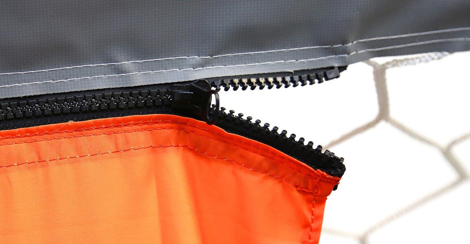 - 3 weather-resistant detachable soccer banners zip on and off for shooting practice