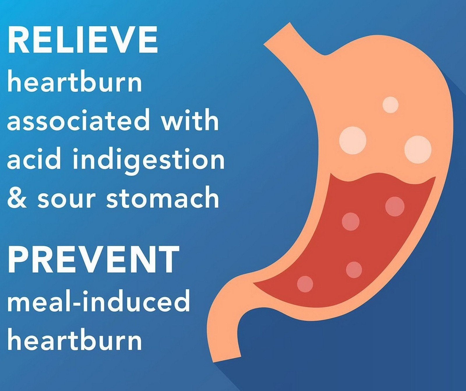 - Just one tablet prevents and relieves heartburn due to acid indigestion and sour stomach