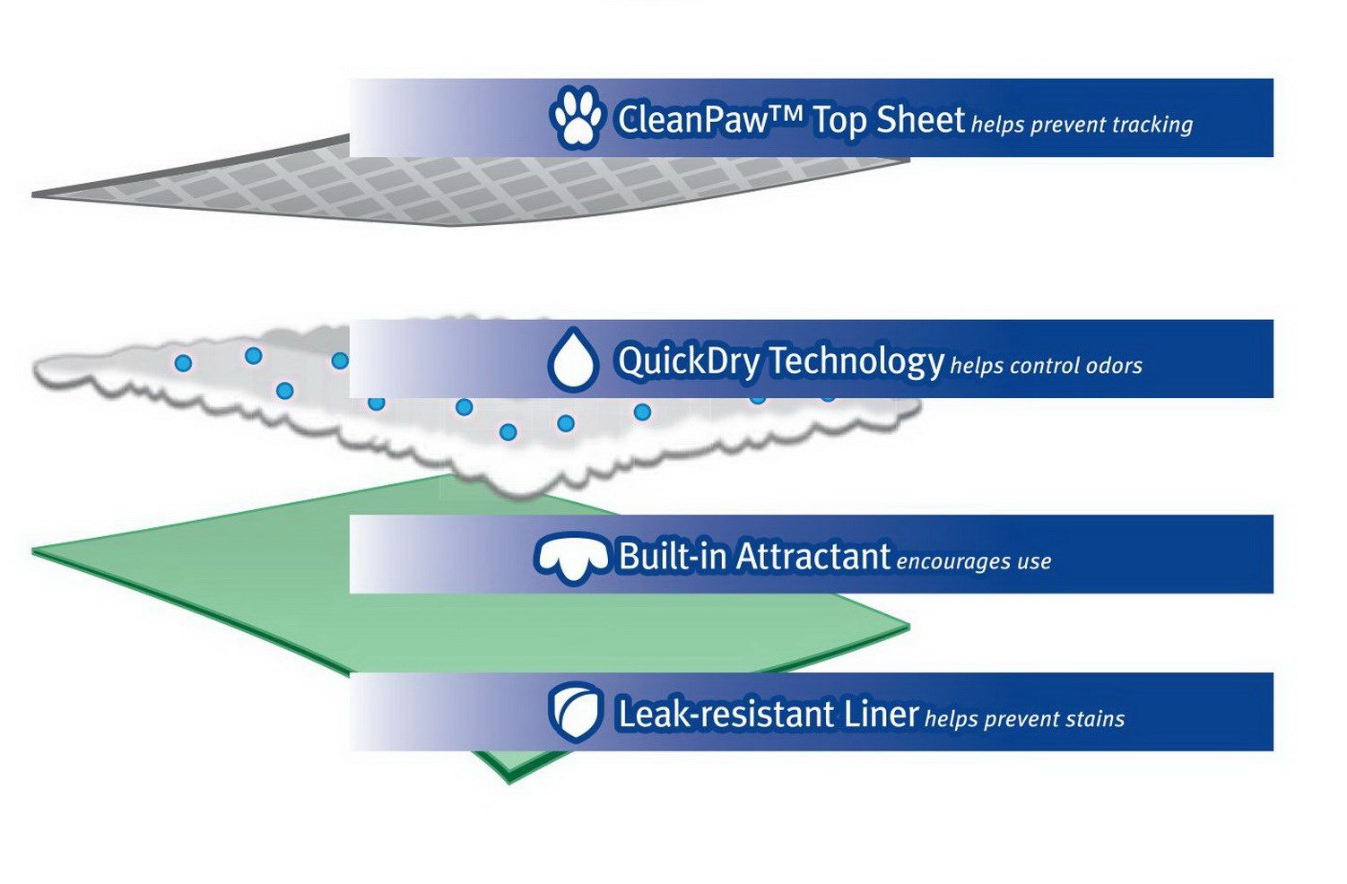Now with a quilted CleanPaw top sheet, pet training pads help prevent tracking and are even more absorbent for your ease of mind.