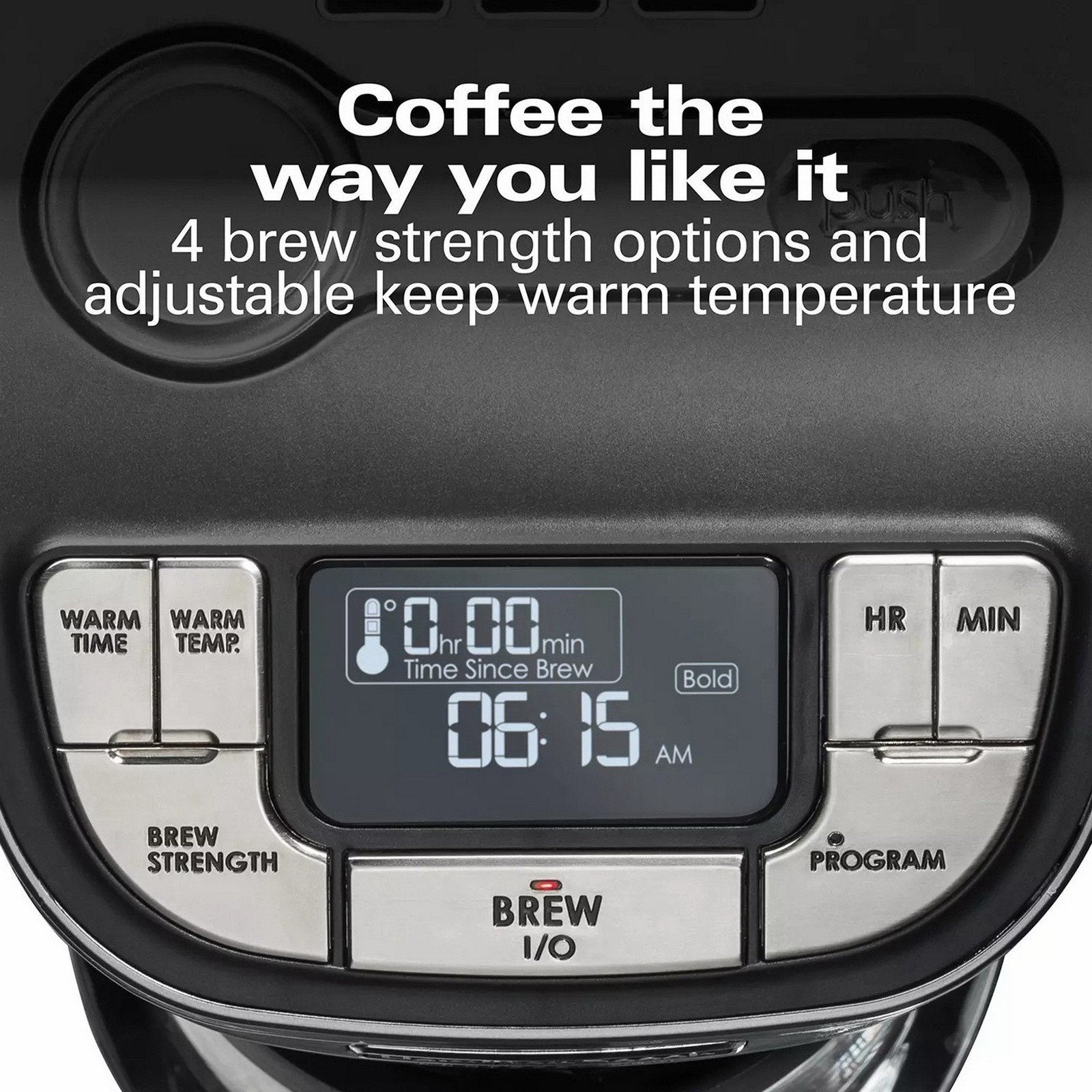 You can wake up to hot coffee with the 24-hour advance brew start, which lets you program a fully automatic morning cup. The drip-free carafe with an ergonomic handle provides comfortable, mess-free pouring. You can customize your coffee with 4-brew strength options and the adjustable keep warm temperature. The "time since brew" freshness indicator and cleaning cycle reminder help you consistently achieve fresh-tasting coffee, and the auto-shutoff time is adjustable. The sleek, brushed-metal design of this coffee maker looks great in every kitchen.