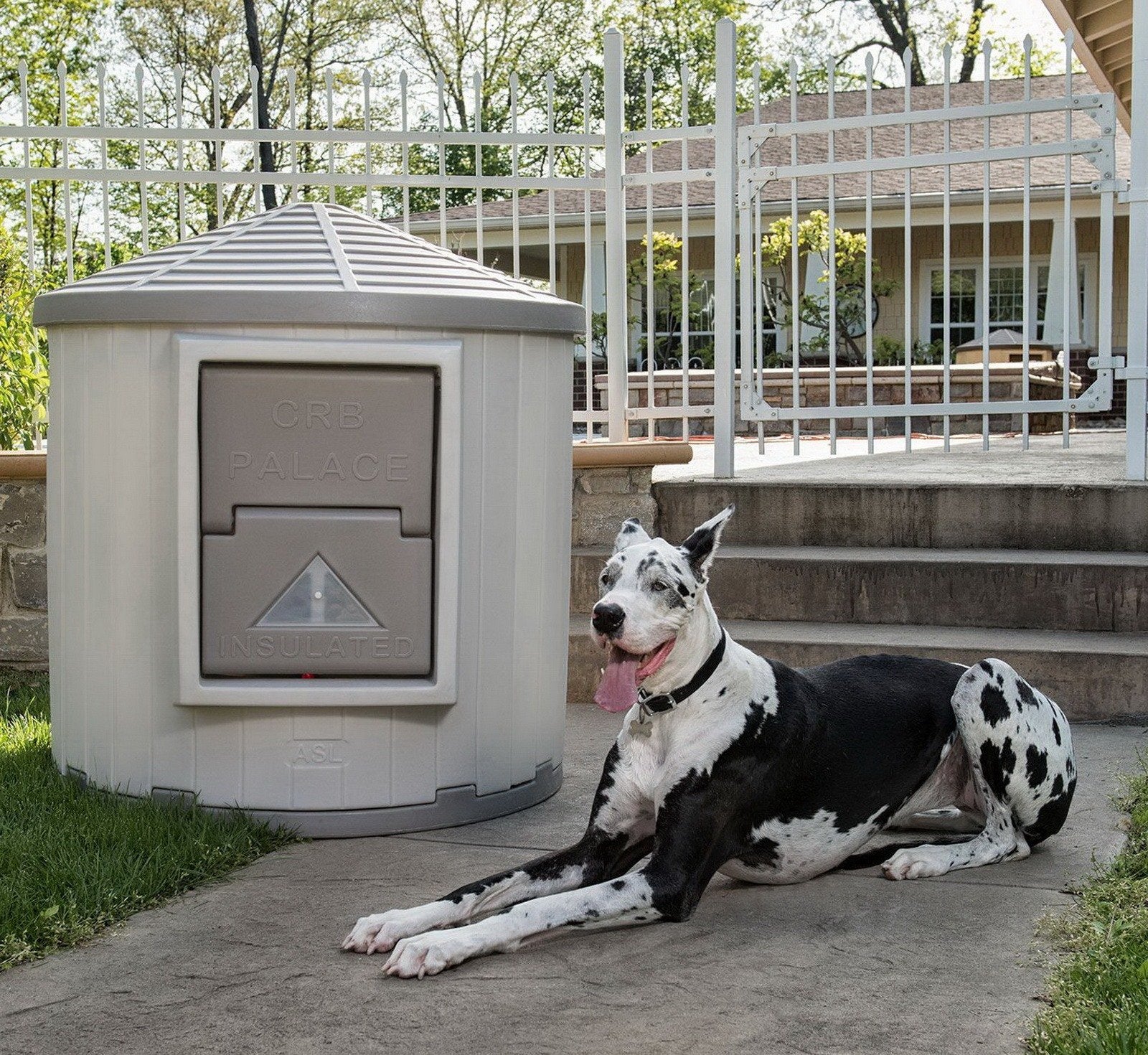 Beautiful and durable, the ASL Solutions CRB Palace Insulated Dog House features up to 4" of real foam (Styro/EPS) insulation in each panel for optimum comfort and for a healthy temperature. Great for big dogs or multiple dogs (and other animals as well) the roomy interior is 38" in diameter and 39.5" high.