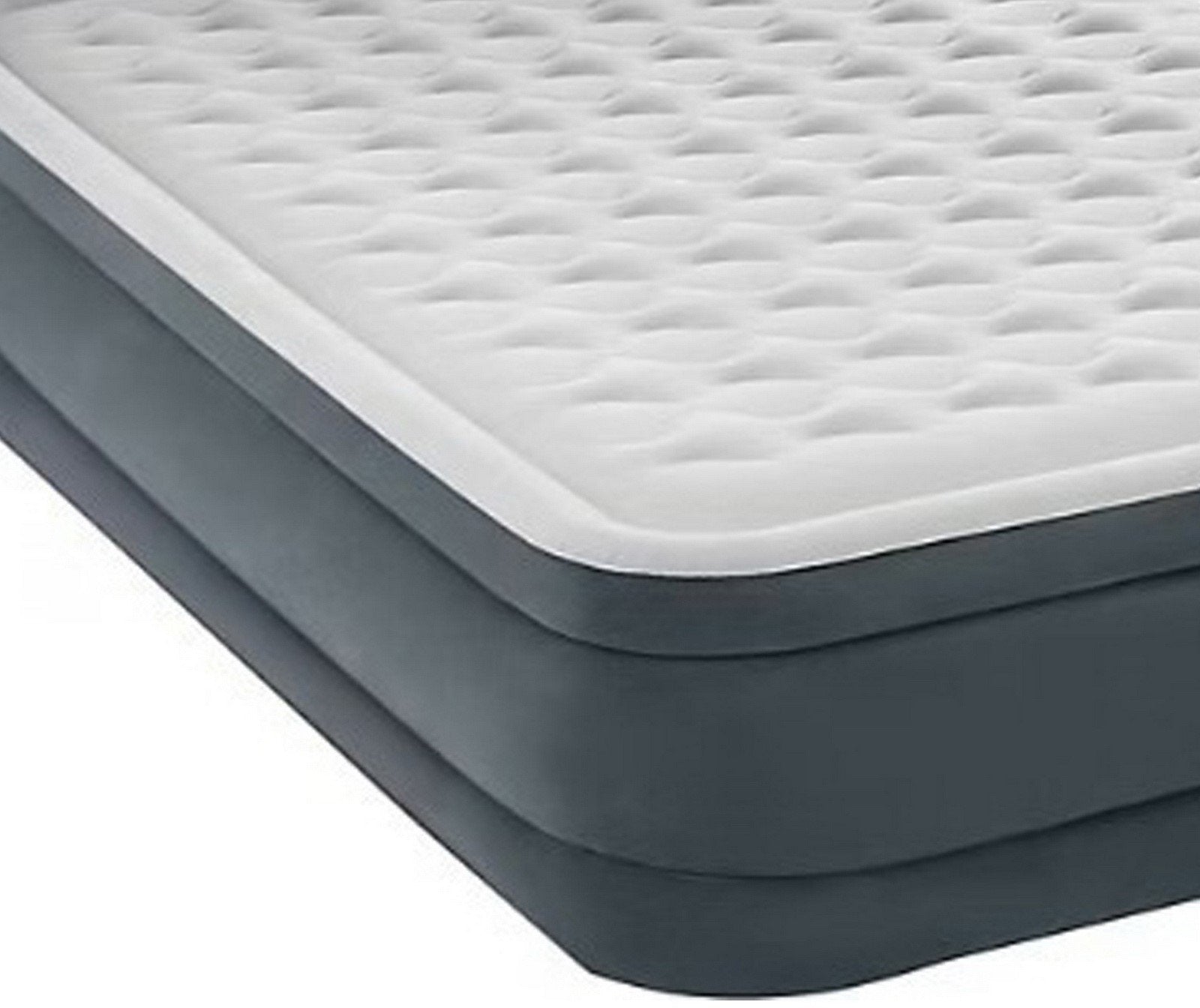 Intex Queen Inflatable Queen Air Bed with Flocked Top Headboard Air Pump Gray