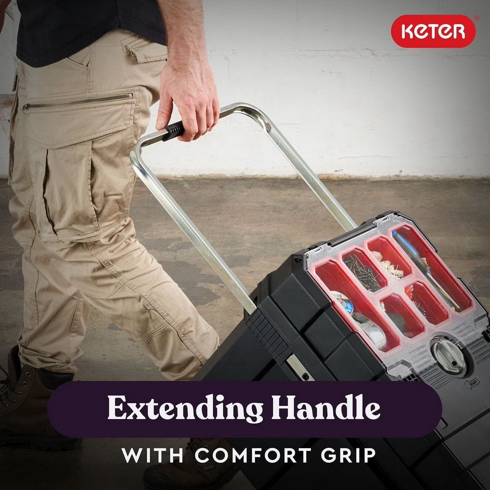 Heavy-Duty Keter Masterloader Rolling ToolBox with Telescoping Handle