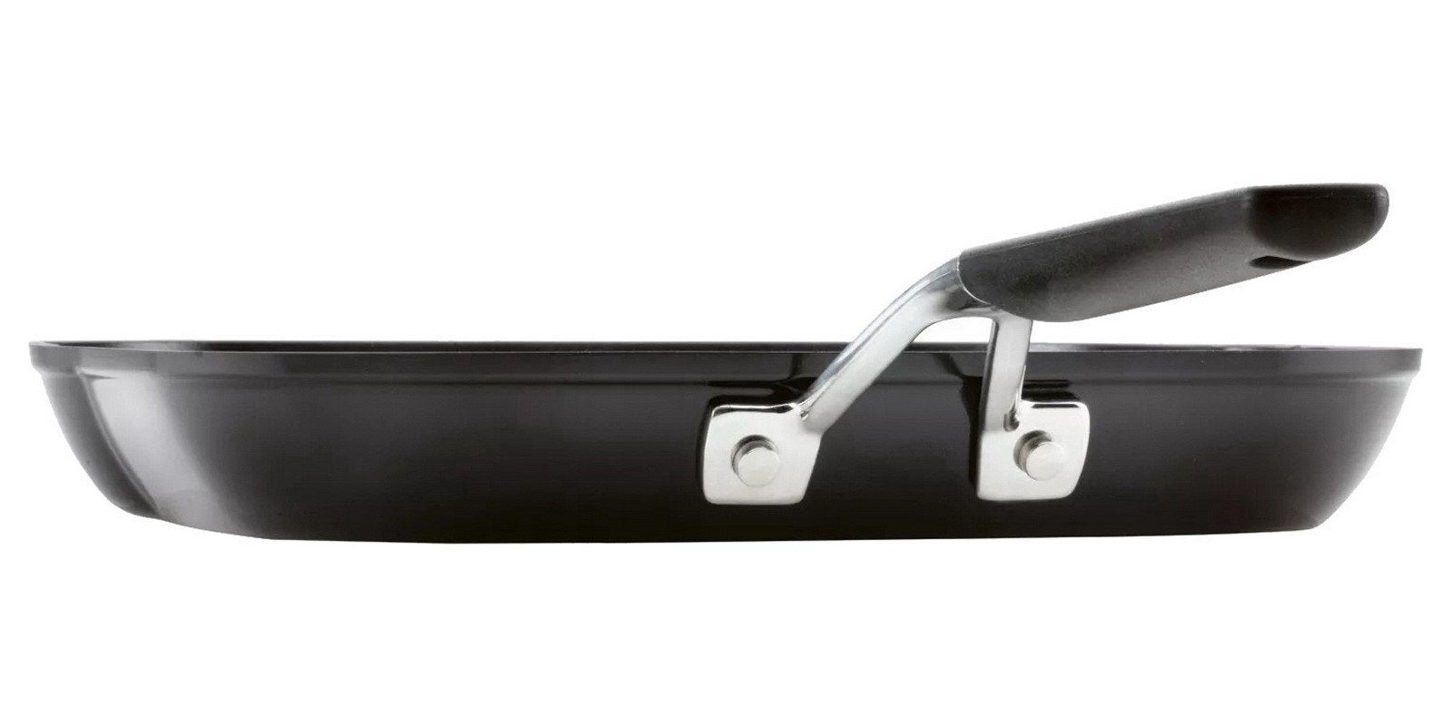 - Dual riveted handles are finished with silicone grips to remain cooler while cooking on the stovetop