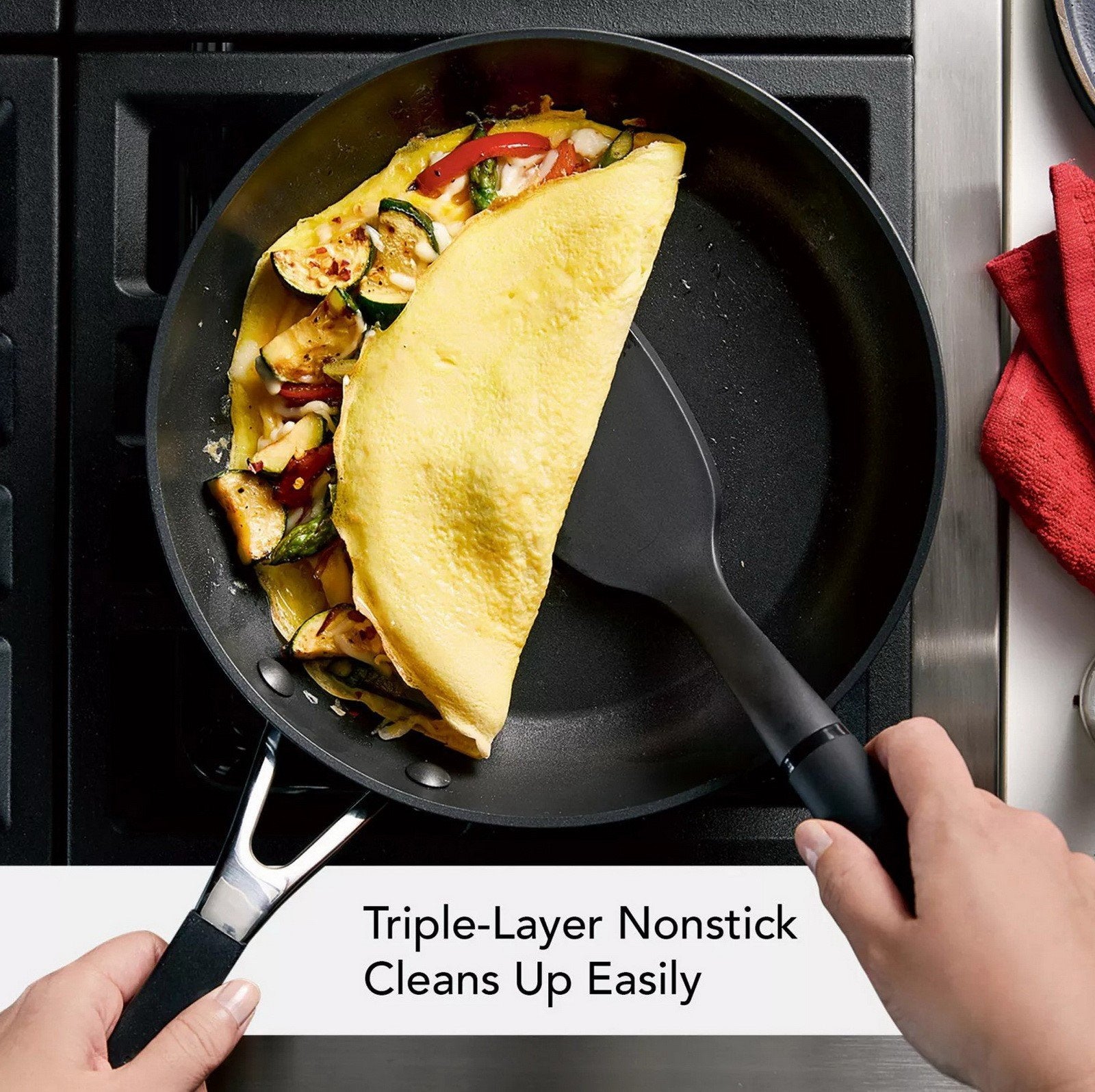 TRIPLE LAYER NONSTICK: Cookware and handle rivets have been finished with triple layer nonstick for long-lasting food release and easy cleaning