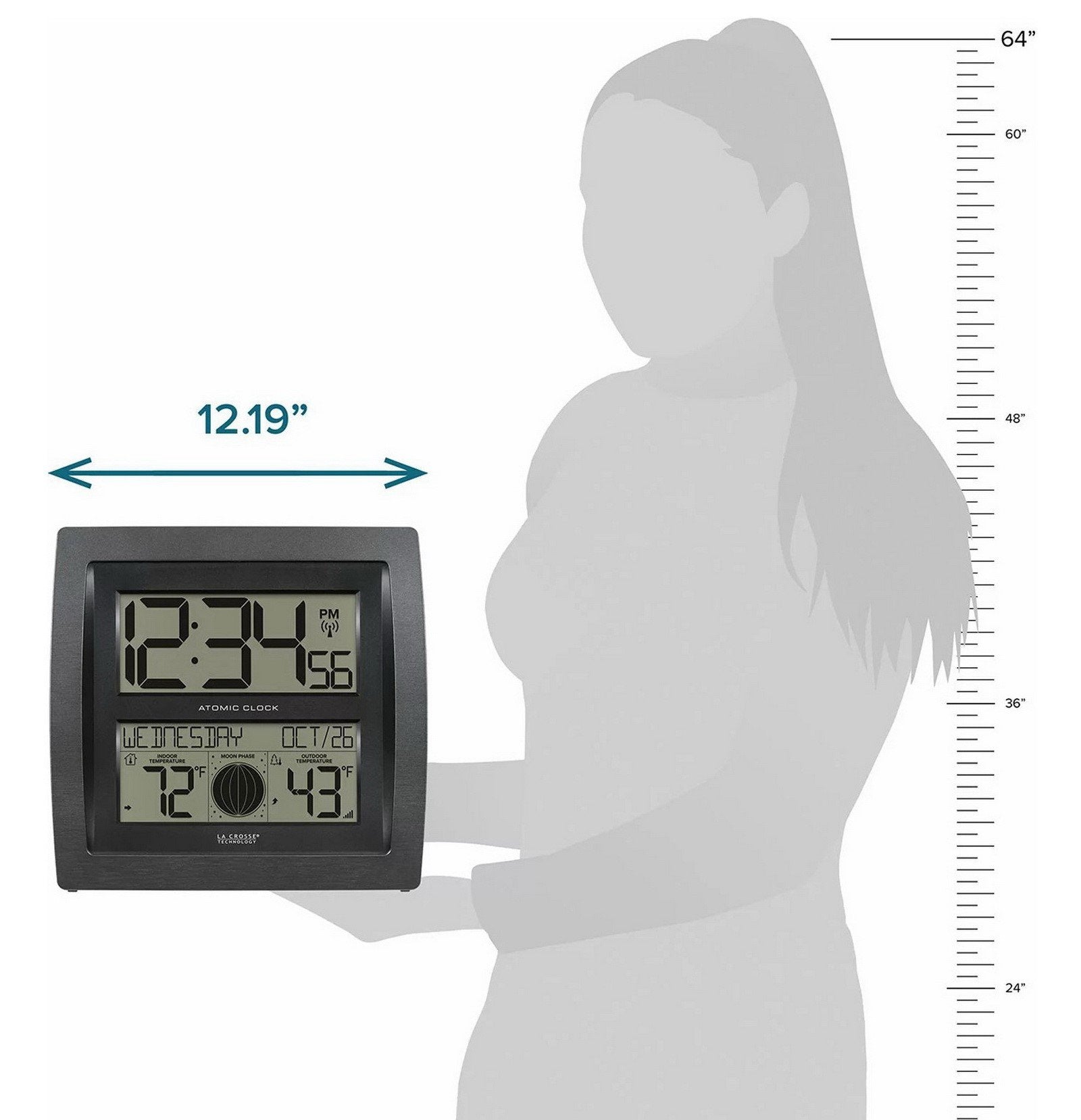 La Crosse Technology atomic clocks set the time and date automatically. Atomic clocks synchronize to a radio signal called WWVB that the National Institute of Standards and Technology (NIST) broadcasts continuously from Fort Collins, Colorado. When connected to WWVB signal, this Curved Digital Atomic Wall Clock will display precise time and date as well as automatically update for Daylight Saving Time changes (on/off option).