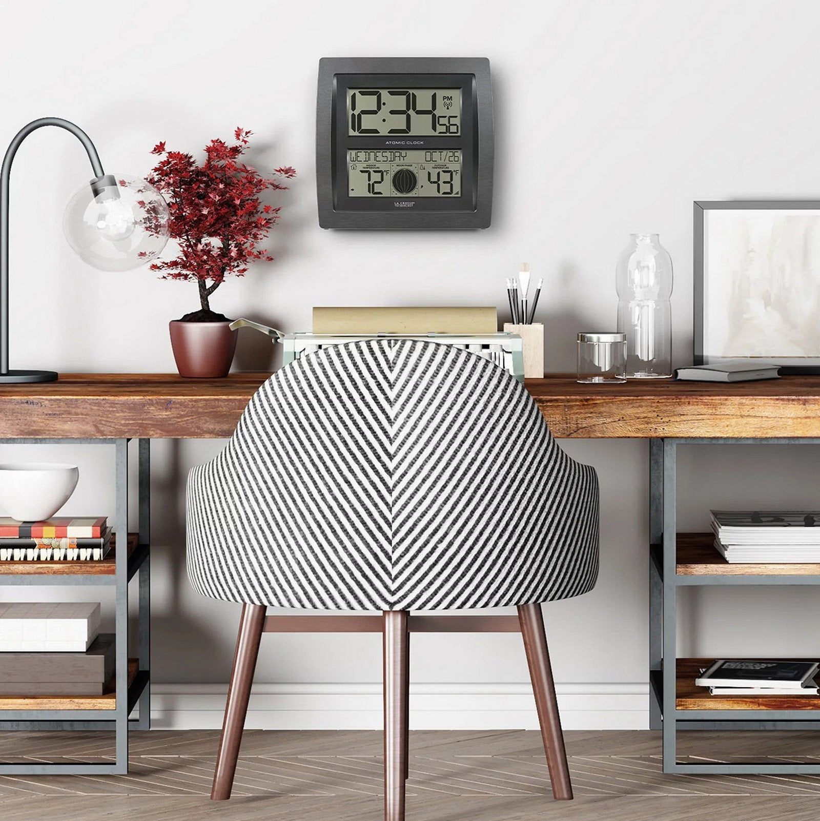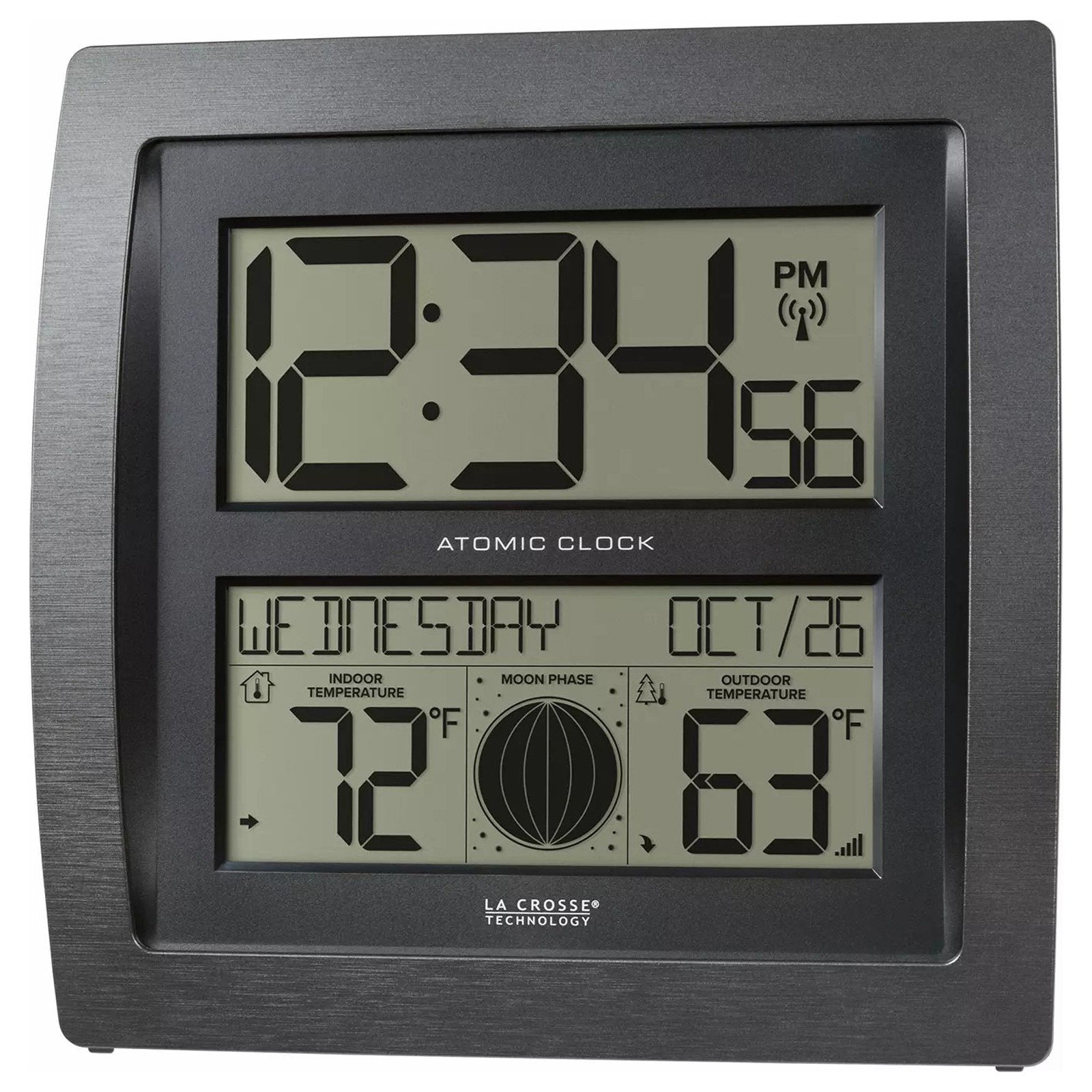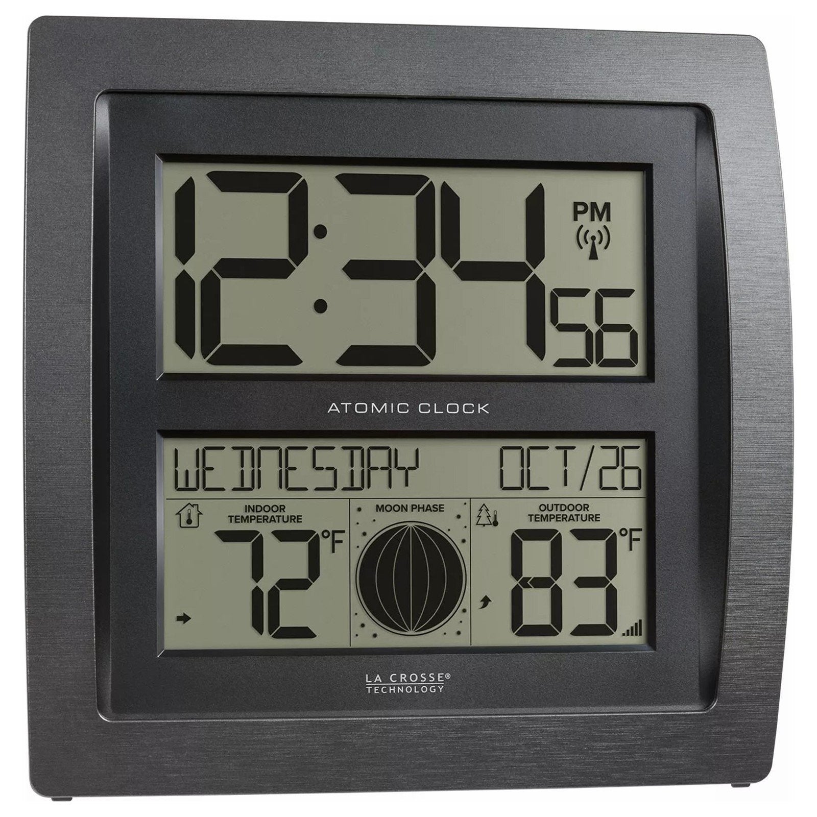 La Crosse Technology Curved Digital Atomic Wall Clock Moon Phase & Temperature