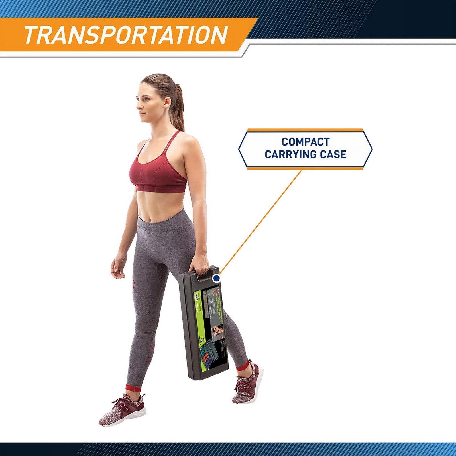 - Stored plastic carrying case for easy transport, storage, and on-the-go use