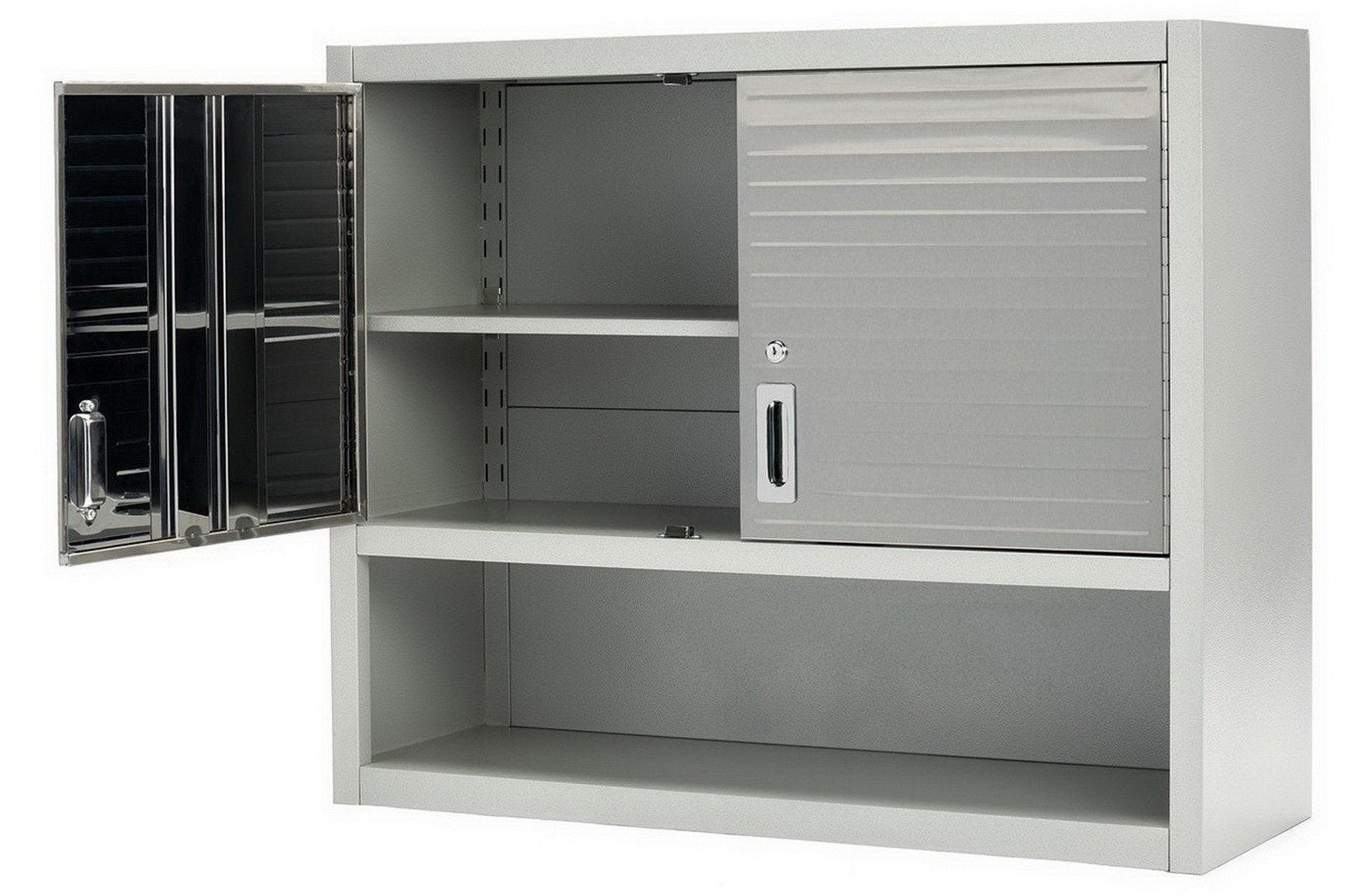 Metal Locking Wall Cabinet Tool Shop Garage Storage Shelf Heavy-Duty Steel