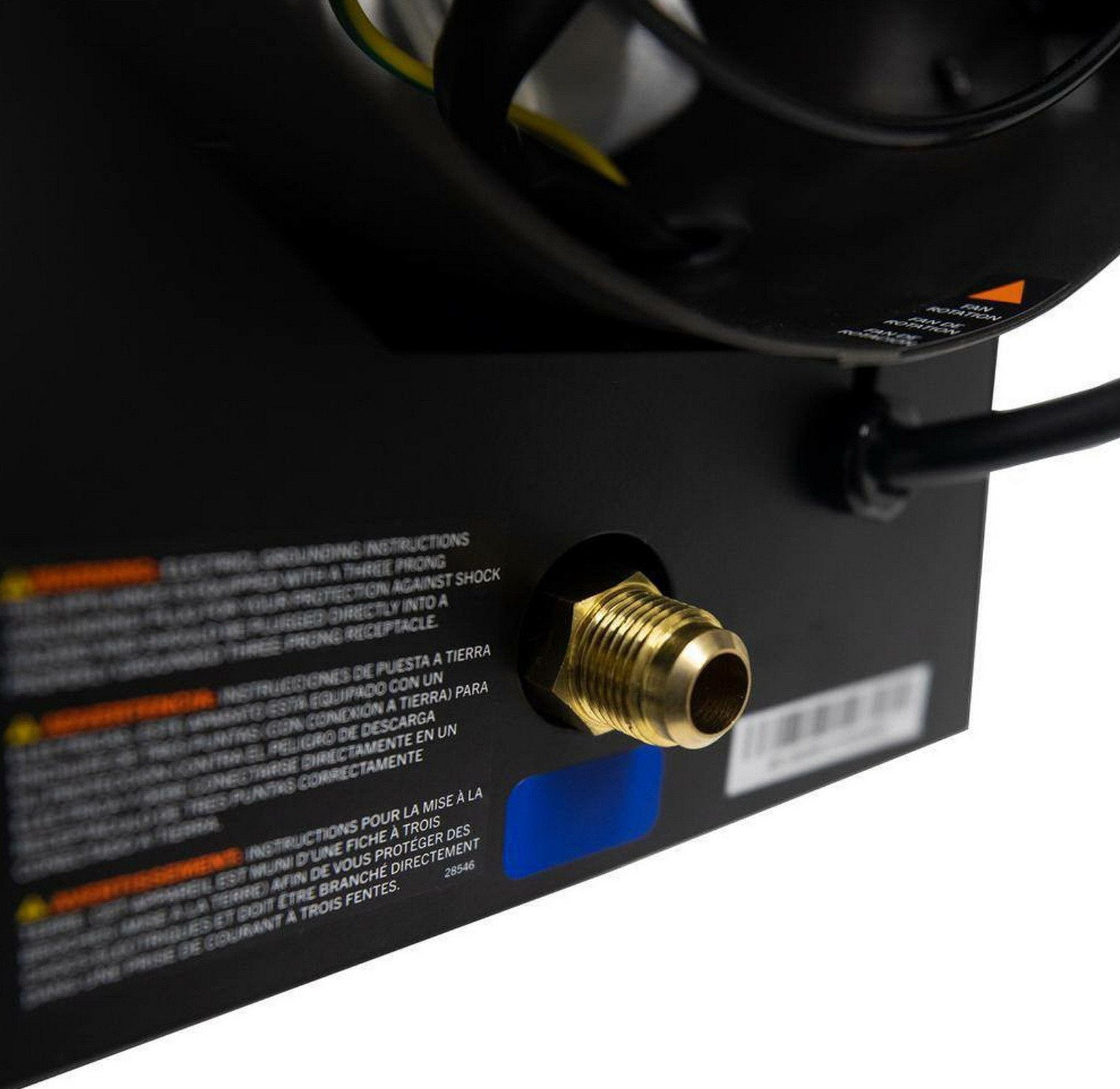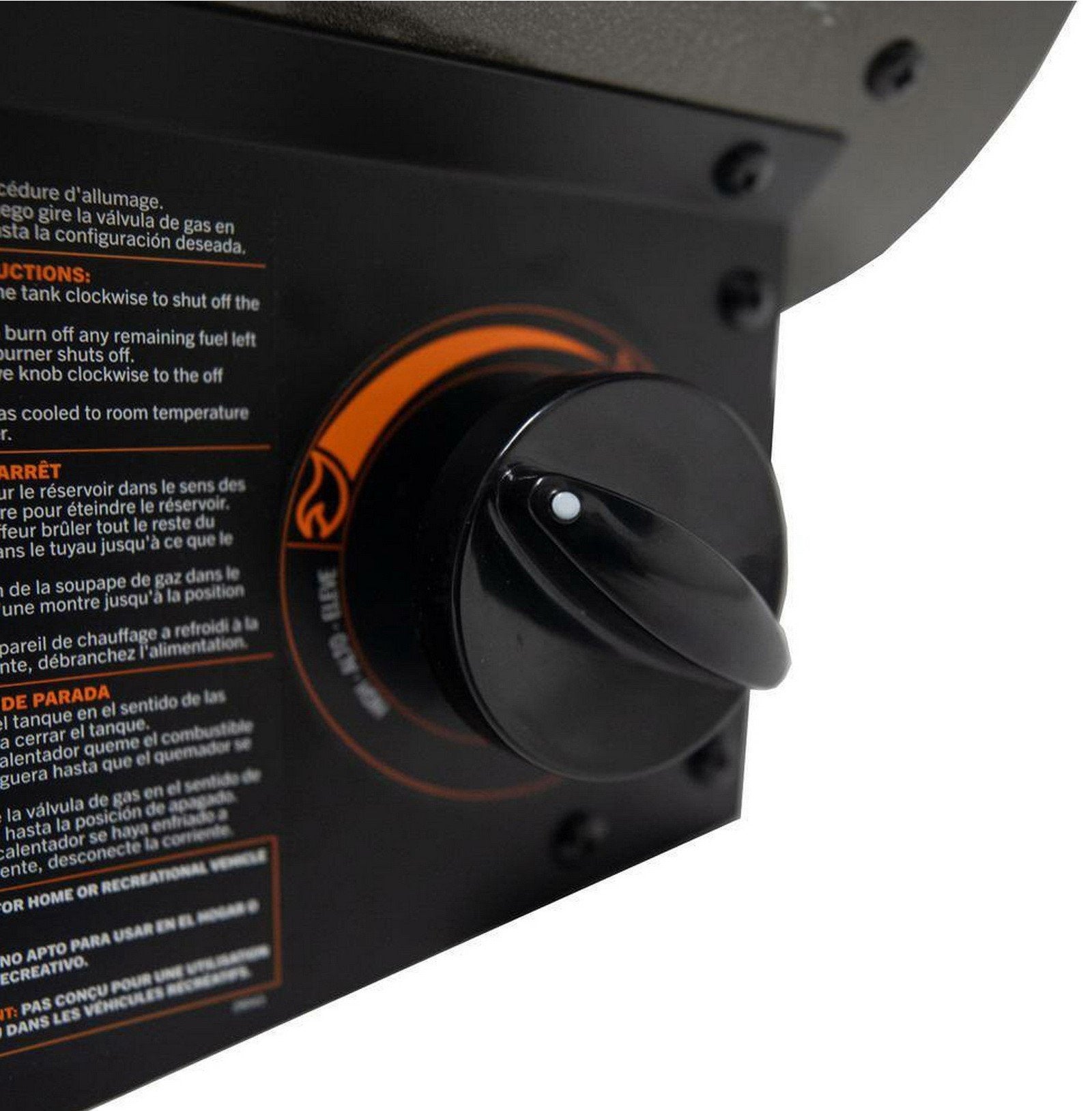 - Heats up to 1,500 sq ft on a 20-lb liquid propane tank