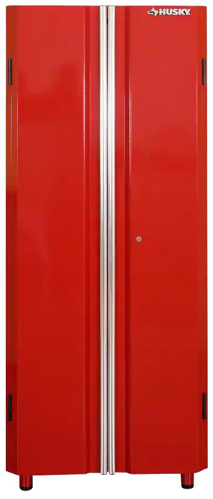 Organize your garage with this Husky ready-to-assemble garage cabinet. Three adjustable-height shelves offer a holding capacity of 150 lbs. each. For more storage, it comes with interior pegboard panels. Tough double-wall doors and 24-gauge steel construction make it built to last.