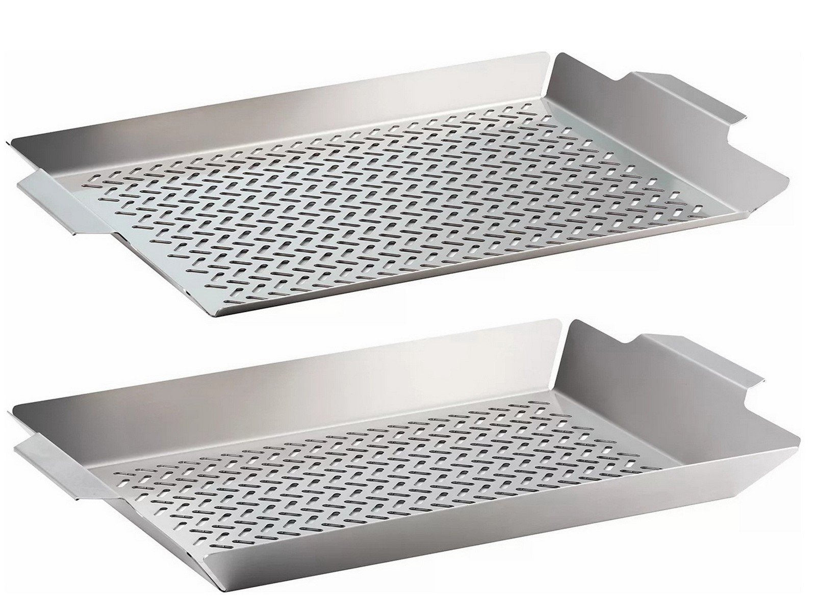 - Perforations in the pans allow your food to absorb the smoky flavors of the grill
