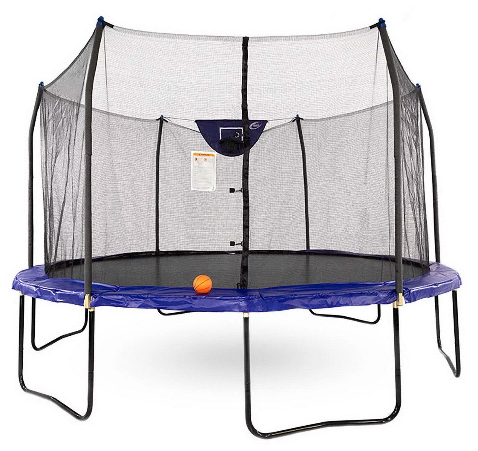 Adding a fun twist to the traditional trampoline, this model comes with an included basketball game. This addition not only enhances the play experience but also promotes physical activity and coordination. The black, powder-coated steel legs provide a sturdy base, ensuring the trampoline's durability for years to come.