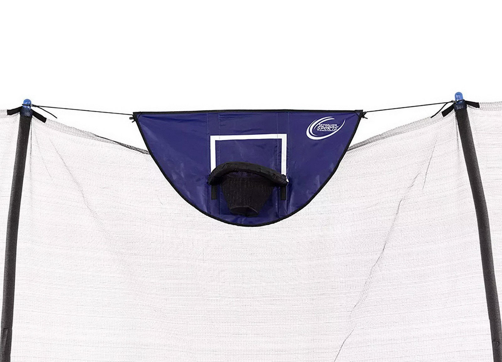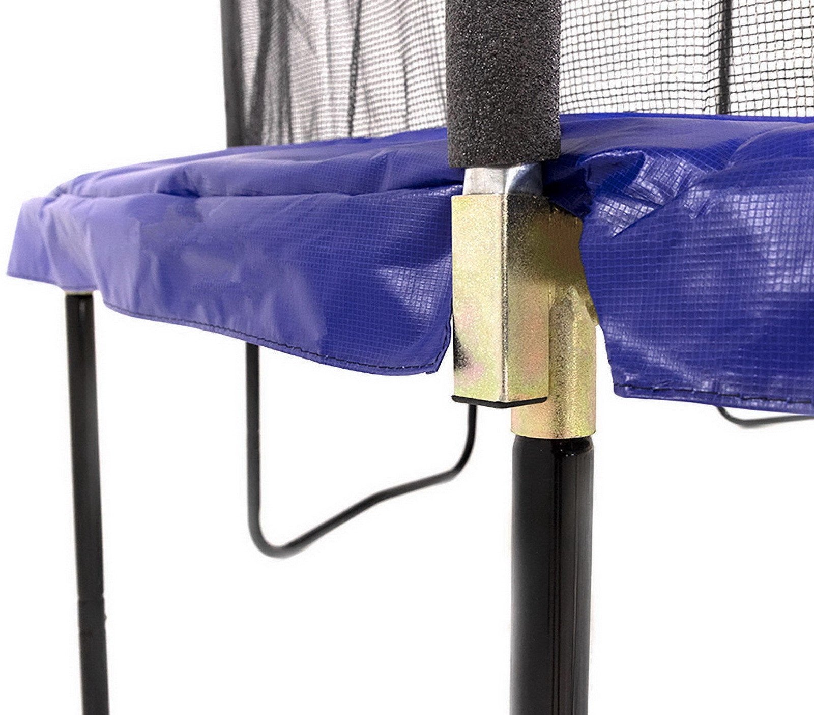 - Soft, safe play materials with a hook and loop breakaway rim fastens to trampoline using bungee