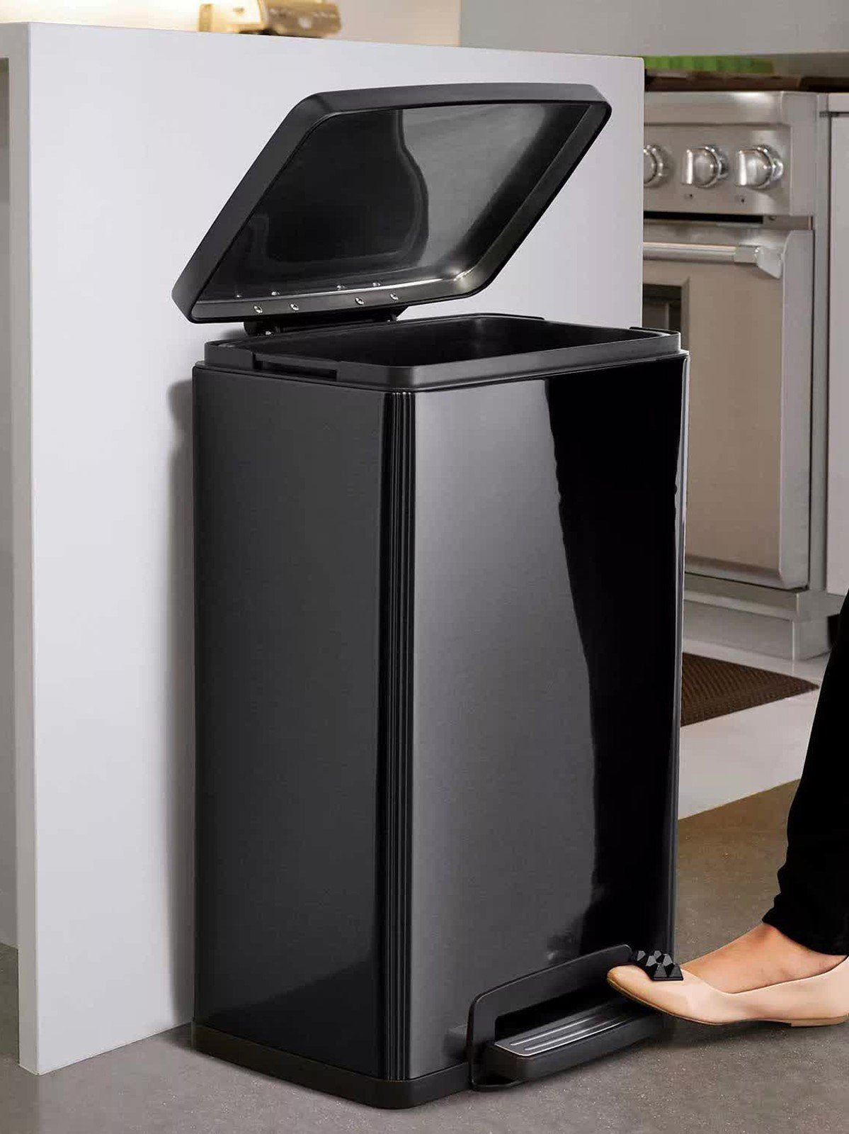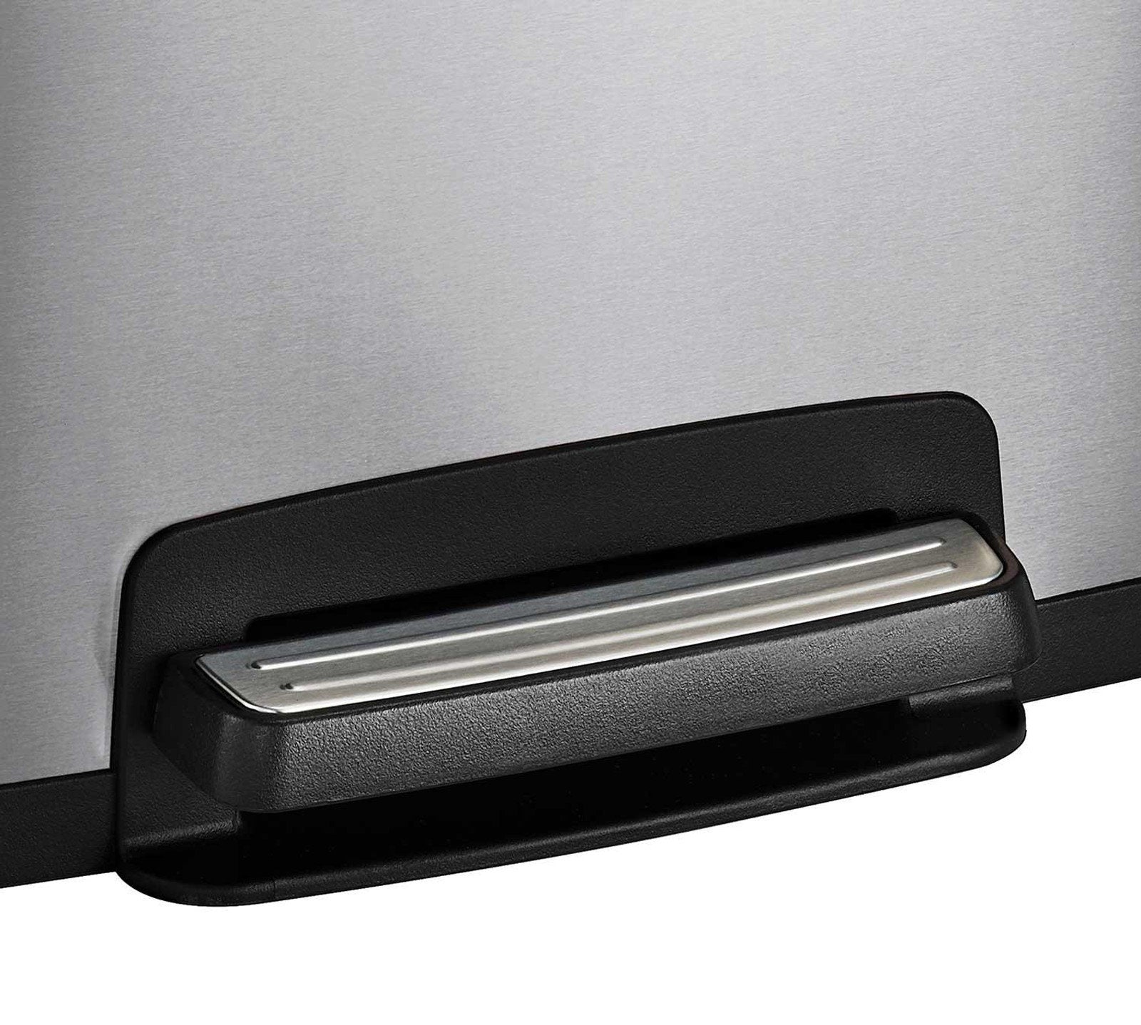 Tramontina's durable Stainless Steel 13 Gallon Step Trash Can is a stylish and functional solution to organize rooms in any home or commercial space. Unique features include a sturdy and sleek Stainless Steel satin-finish body with a fingerprint-free and stain-free coating, a dense polypropylene lift-out liner with vented base for easy bag removal, and an easy step-open pedal with a soft-closing lid. The Tramontina makes a useful addition to variety of spaces, from the kitchen to a home office. The rectangular step can helps keep your space organized and clean.