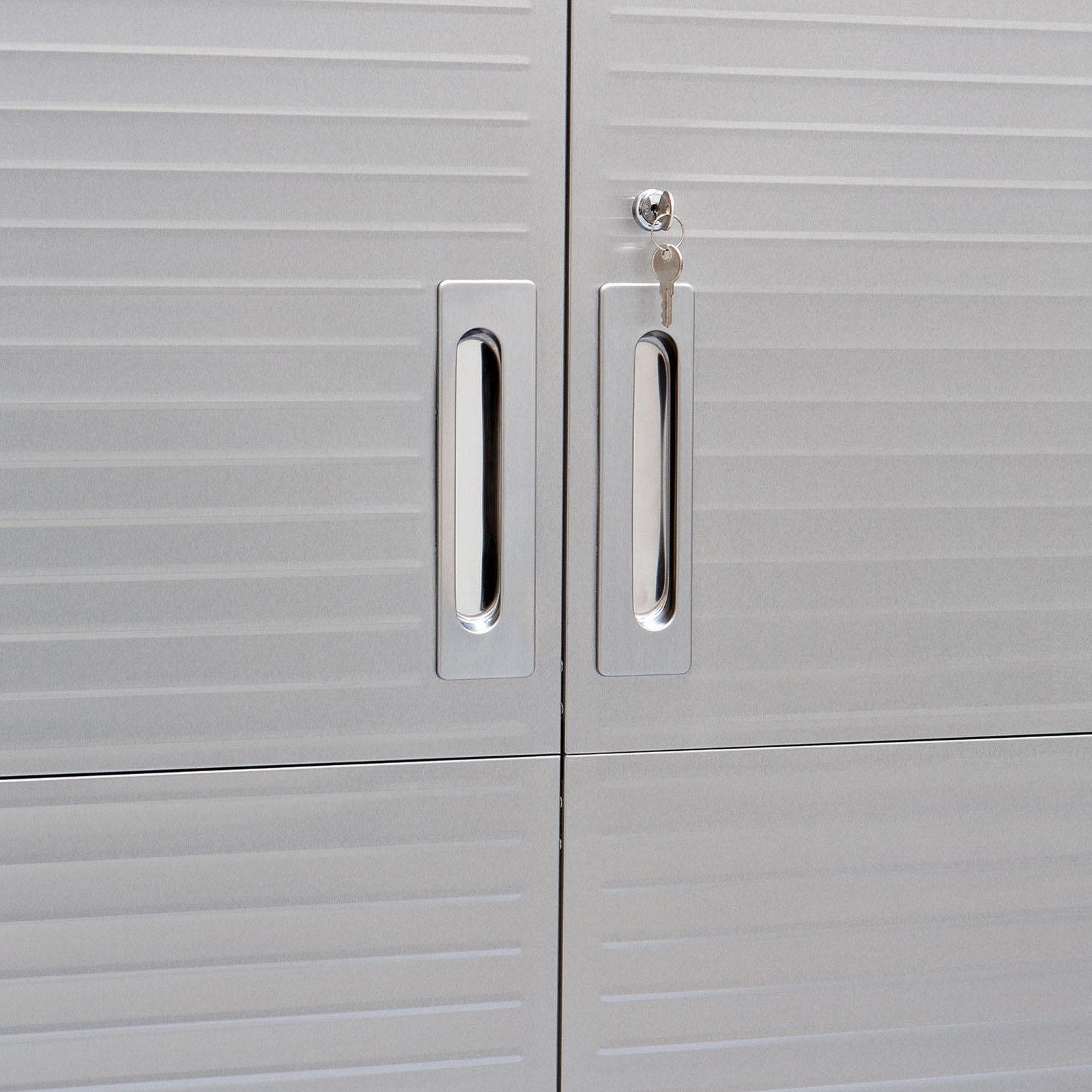 High quality leveling feet mean that this Seville storage cabinet is at home in the garage, work shed or in any room in your house. Powder coated construction makes the Seville UltraHD cabinet easy to clean and maintain, even in a semi-outdoor space like a garage or shed. Even though it's utilitarian and sturdy, the Seville storage cabinet has clean, stylish lines that are at home in a visible room like a library or home office as well as a garage. The stainless steel doors lock for added security.