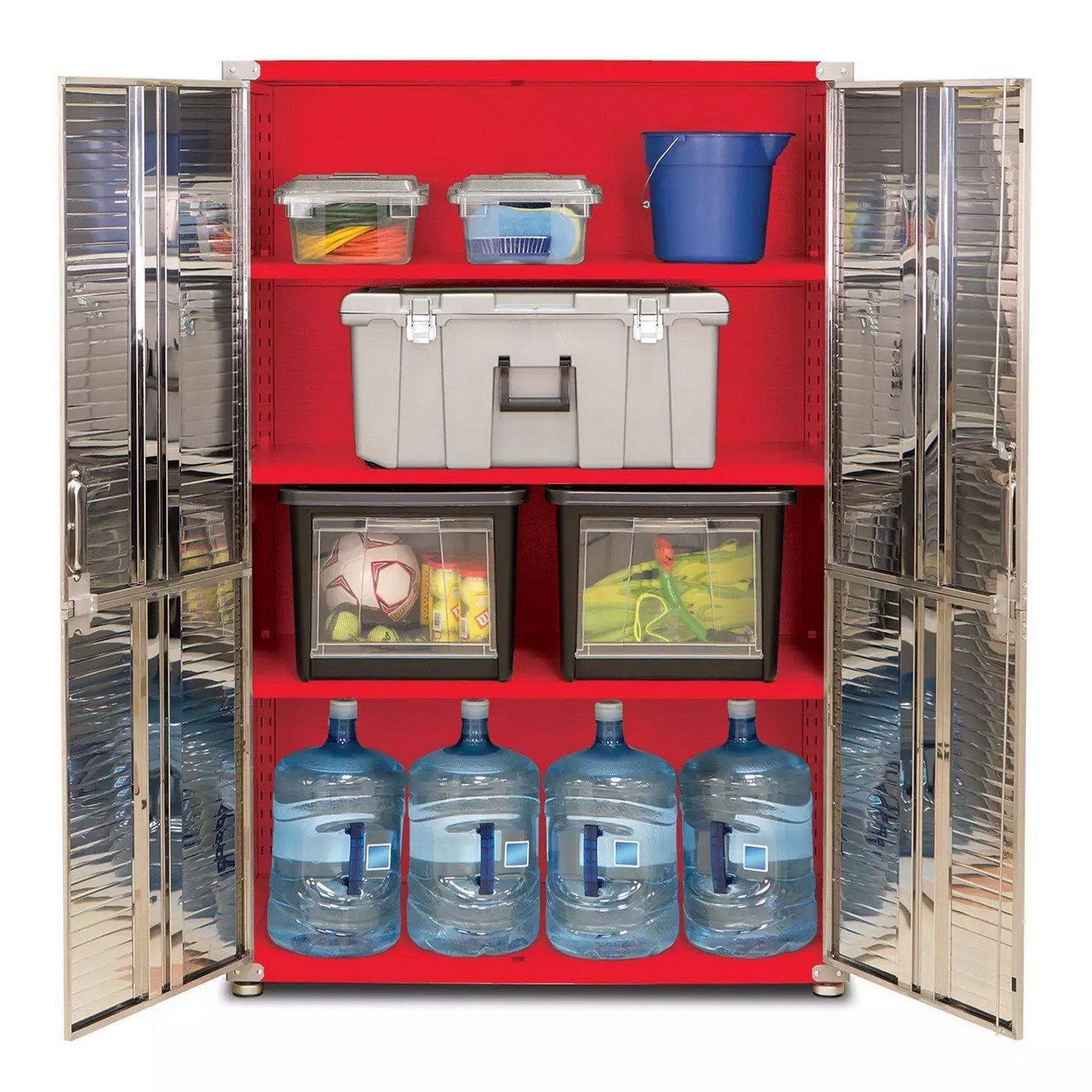 Tall Storage Tool Cabinet Locking Stainless Steel Doors 48" Wide Red Gray Black