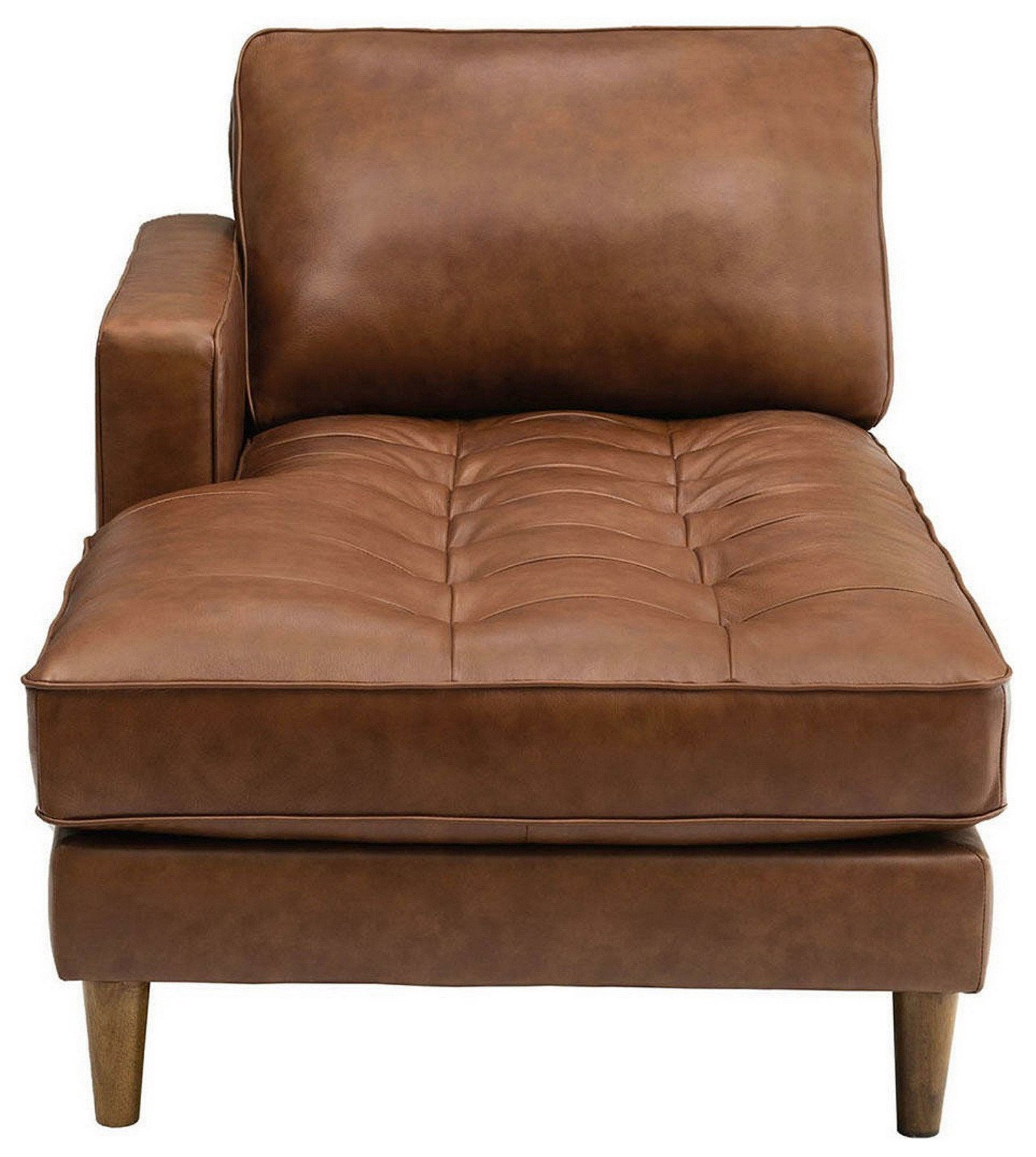 Complete your home with the timeless, mid-century style of the Jasper Leather Sectional. Available in a rich Camel, the Jasper will elevate your living space. Upholstered with top-grain leather on all seating areas, while the sides and back of are upholstered in a durable leather match. The top-grain leather upholstery is durable and great for regular use. No detail was forgotten with the beautiful craftsmanship shown on the outsides of the armrests. Be sure to measure your space ensuring the sectional will fit comfortably.