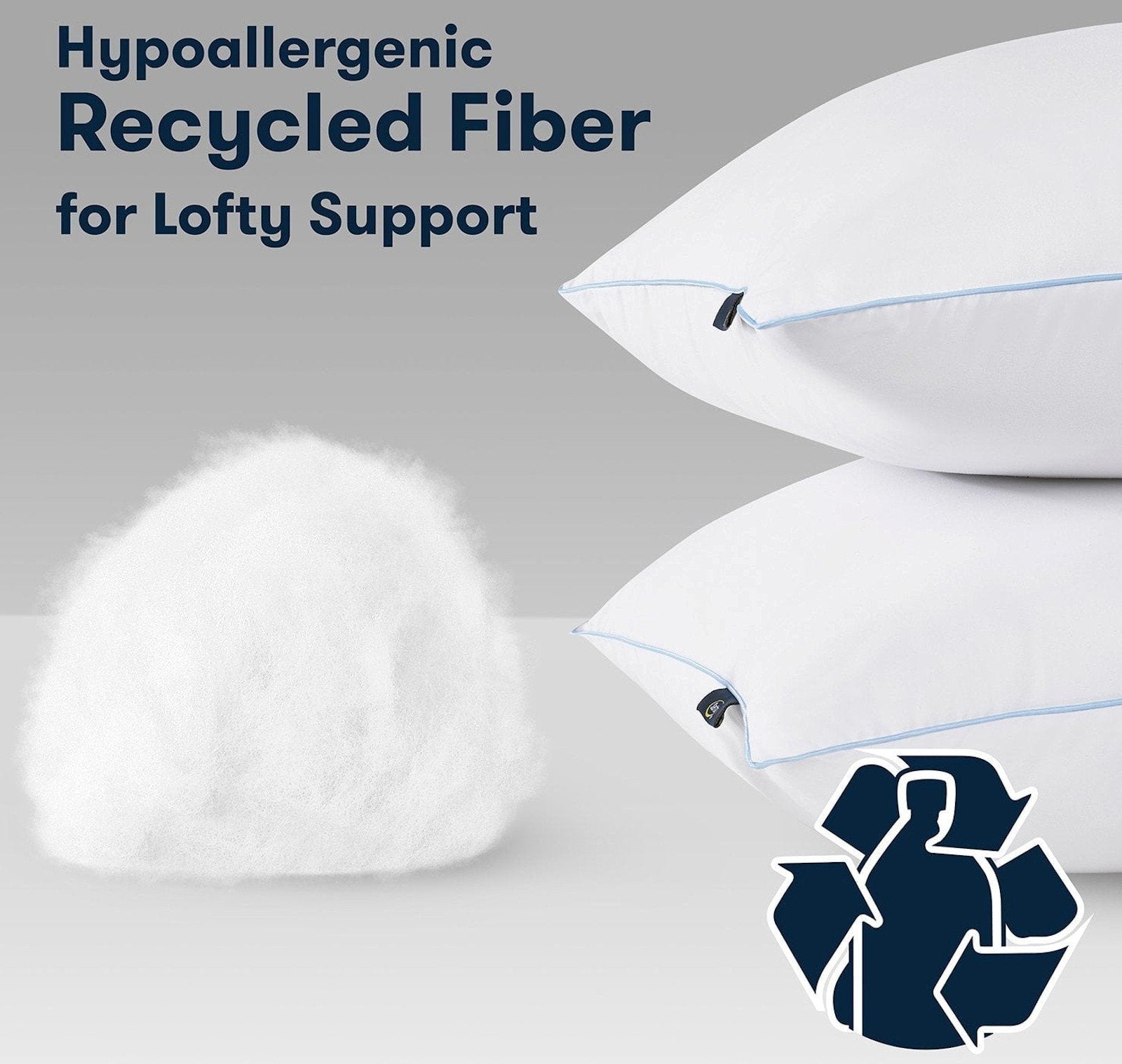 Sleep comfortably on these soft, supportive, hypoallergenic, 300 thread count pillows. Sleep well knowing that Serta uses recycled materials for an eco-friendly fill.