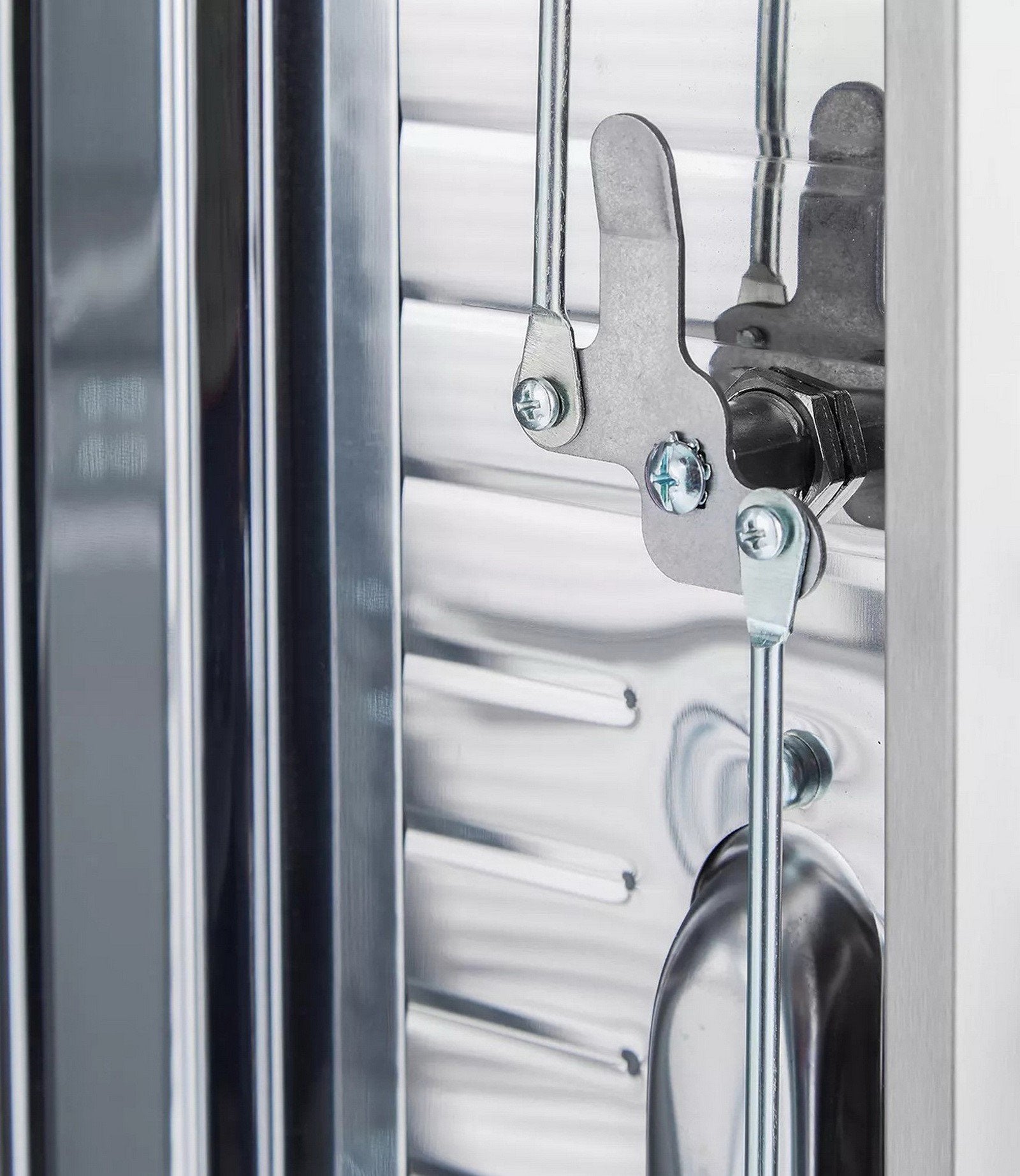 The doors hold shut with magnetic latches preventing them from opening by accident when unlocked. Lock the doors with the key for additional security.