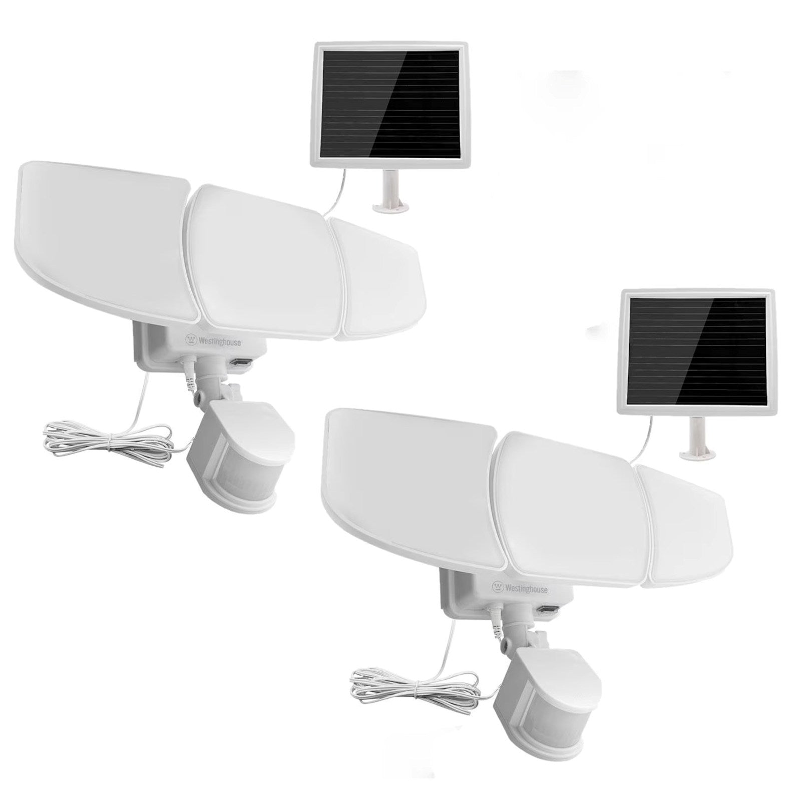 Instantly add safety and security to your home with the Westinghouse 2000 Lumen Solar Motion Activated Triple Head Security Light. When motion is detected, the solar-powered light automatically illuminates to 2000 bright lumens. You can install this light in a variety of locations such as garages, sheds, or other dark areas around your home or business. There's no wiring, so it's easy to install yourself and requires zero maintenance. Westinghouse 2000 Lumen Solar Motion Activated Triple Head Security Light comes with mounting hardware and the amorphous solar panel charges in the sun or shade, so you don't have to worry about seasonal changes in the light. We recommend that to ensure maximum performance, you place the light somewhere where it is likely to receive direct sunlight for the majority of the day when possible.