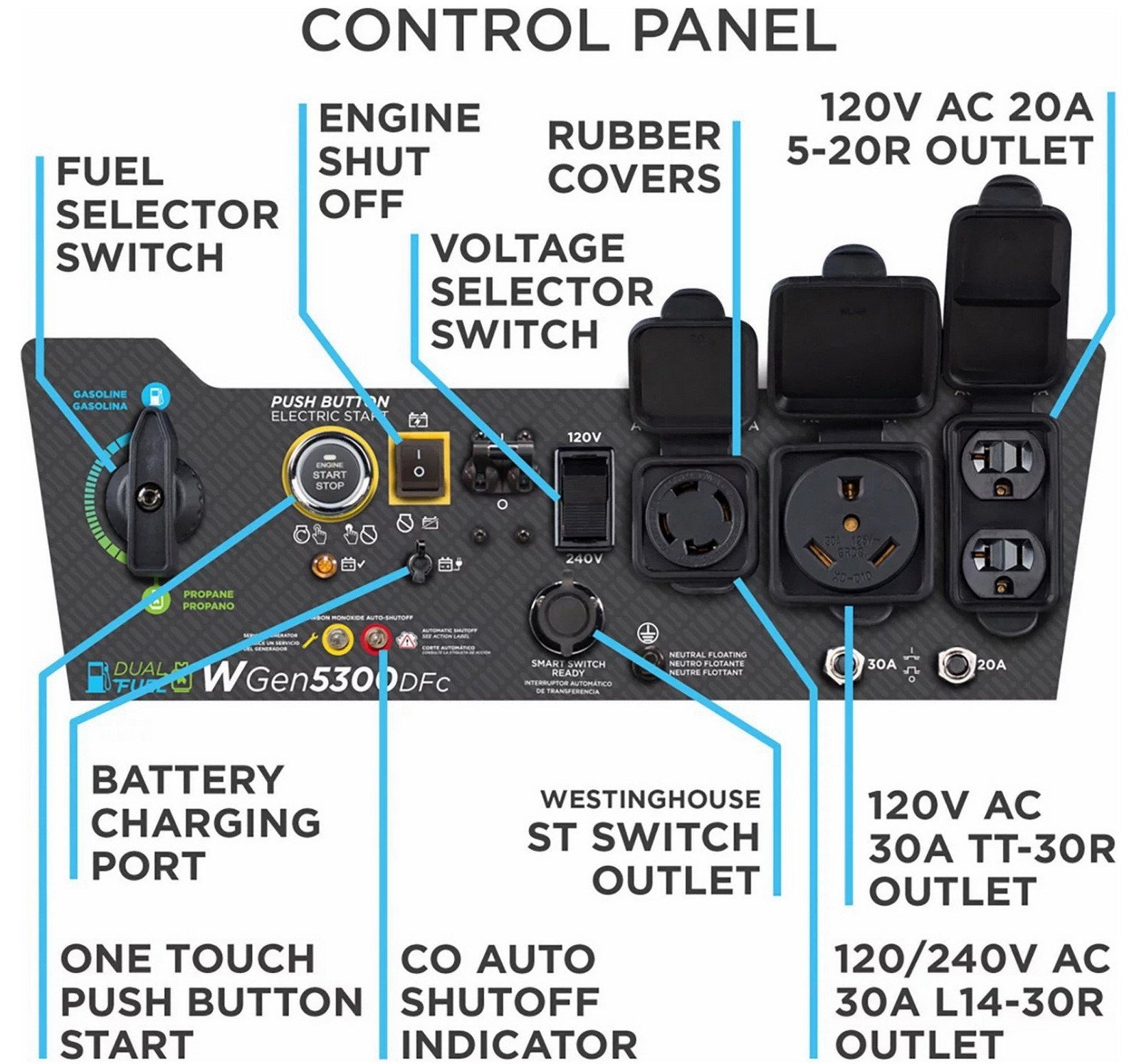 Westinghouse WGen5300DFc 6600/5900 Peak Watts 5300/4800 Rated Watts Dual Fuel Generator