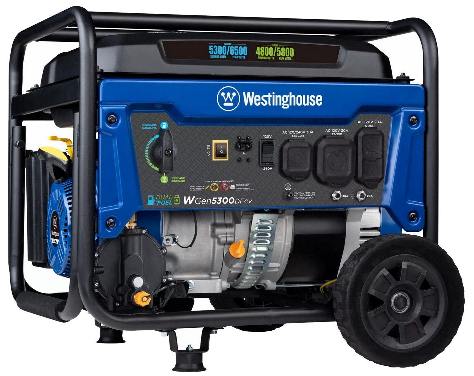 Westinghouse WGen5300DFcv 6500/5800 Peak Watts 5300/4800 Rated Watts Dual Fuel Generator