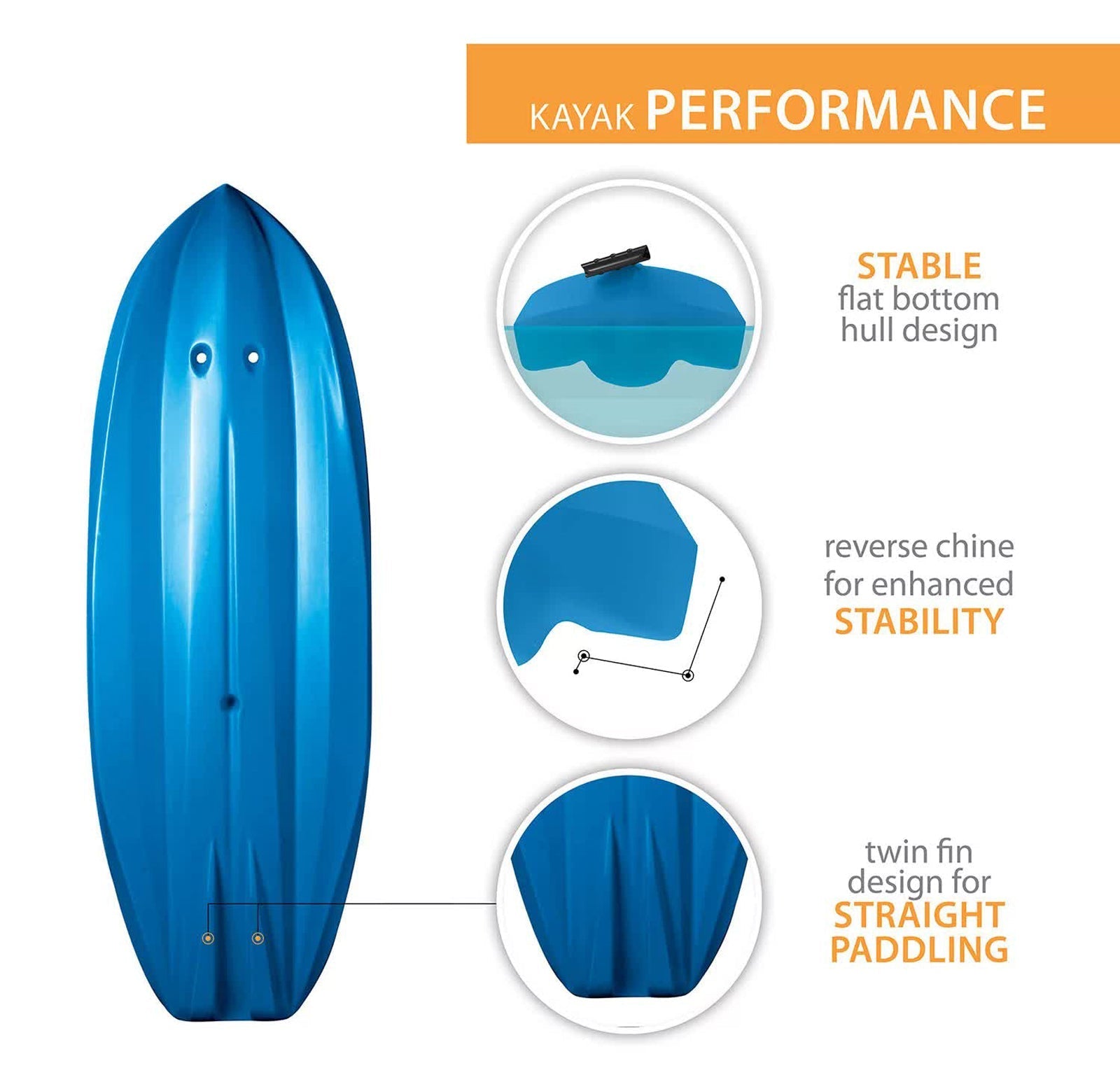 - Reverse chine for enhanced stability, swim-Up step, lightweight 18 lb. design