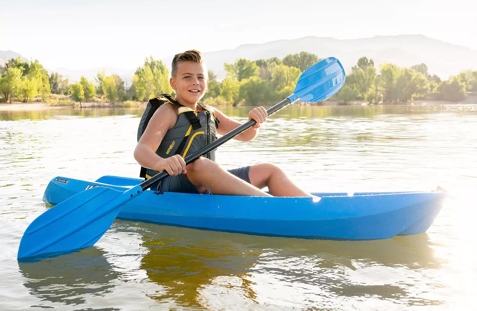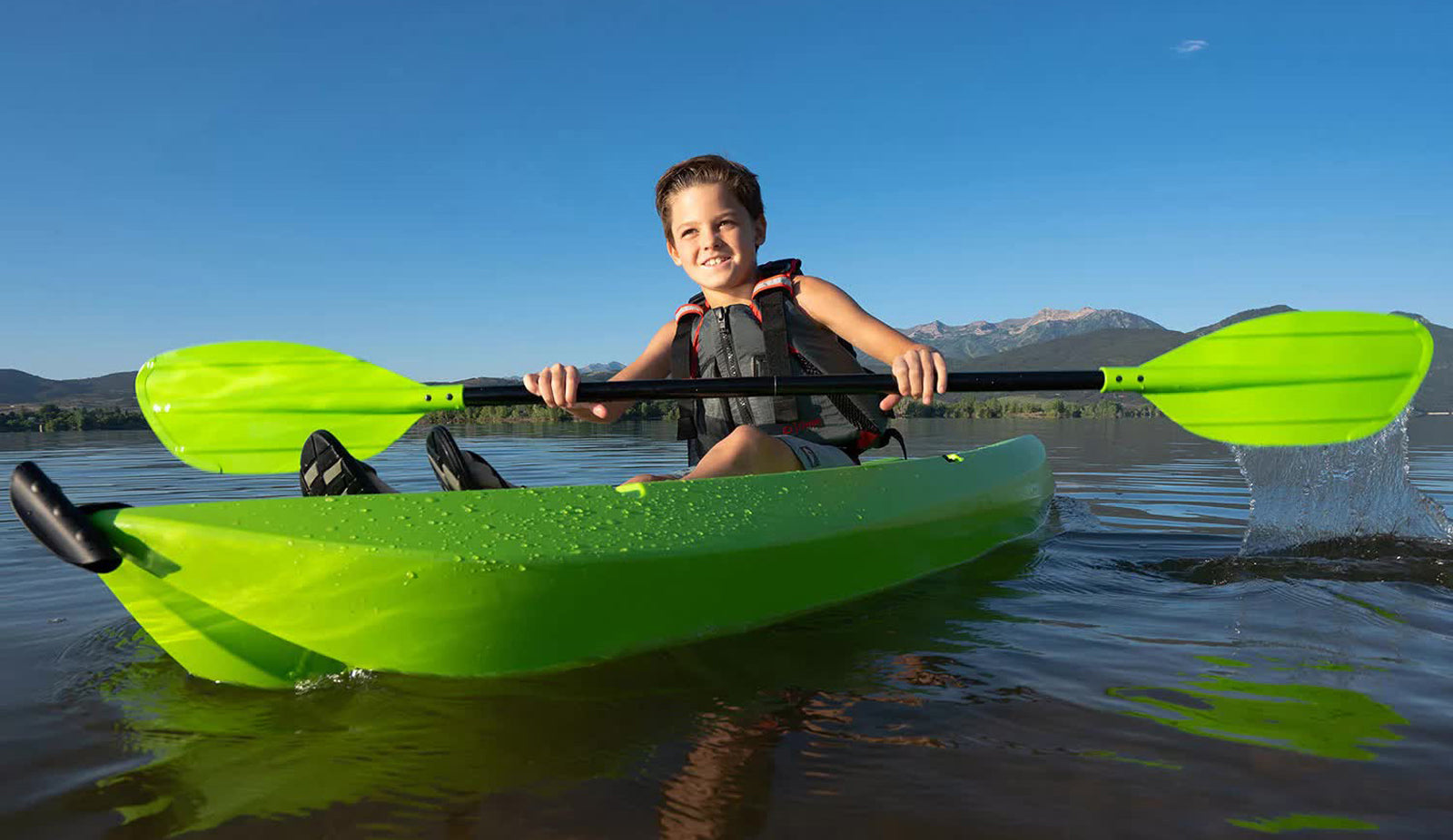 - Perfect for kids of all ages, molded finger handles on each side of the kayak